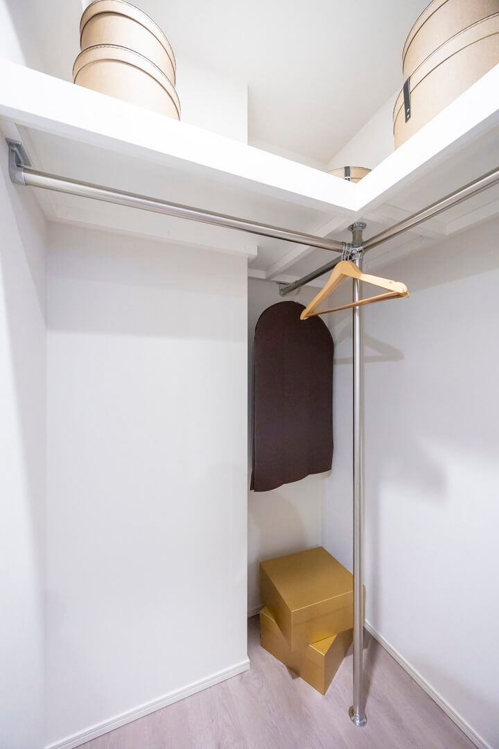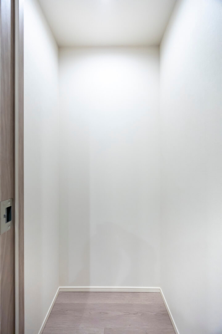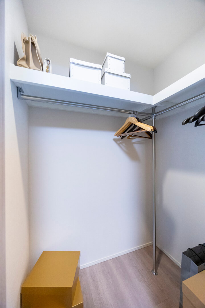主寝室に良さそうな寝室1には、上品なクロスがあしらわれています。ピクチャーレールも設置されているので、自分好みの空間に演出することができますよ。また、奥行きがあるウォークインクローゼットのため、洋服や大きめの荷物もすっきりと収納することが可能です。