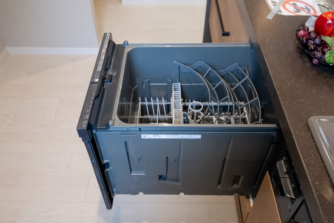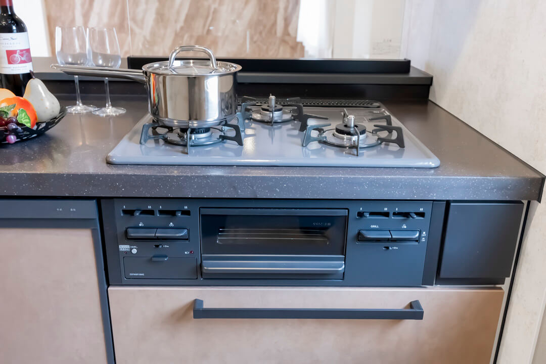 調理の際に手軽においしい水を使用できる浄水器一体型水栓や、後片付けの捗る食洗機付き。グリル付3口ガスコンロも付いていて、快適なキッチン時間をサポートしてくれます。