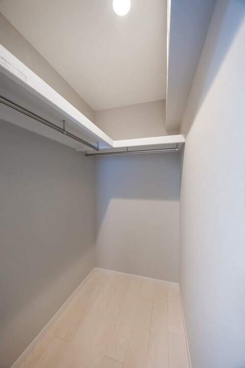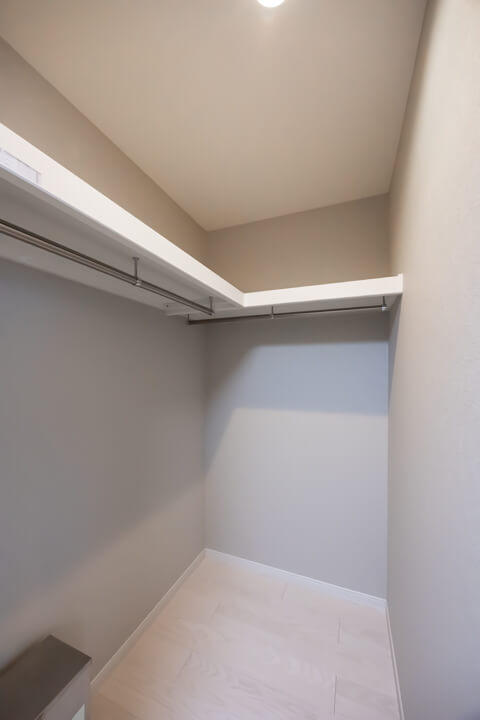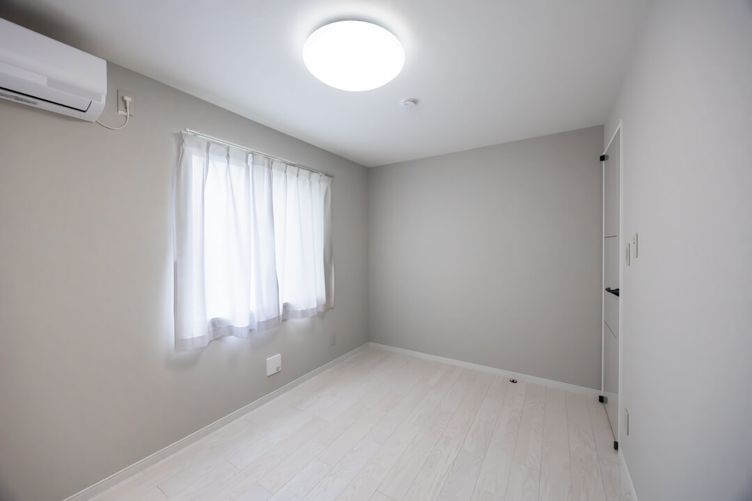 同じく2階にある寝室2。約5.6帖です。東向きの窓から朝日が入り、爽やかな朝を迎えられそう。こちらのお部屋にもWIC(ウォークインクローゼット)があり、衣類はもちろん、かさばりがちなトランクケースなども収納できます。子ども部屋にいかがでしょうか?