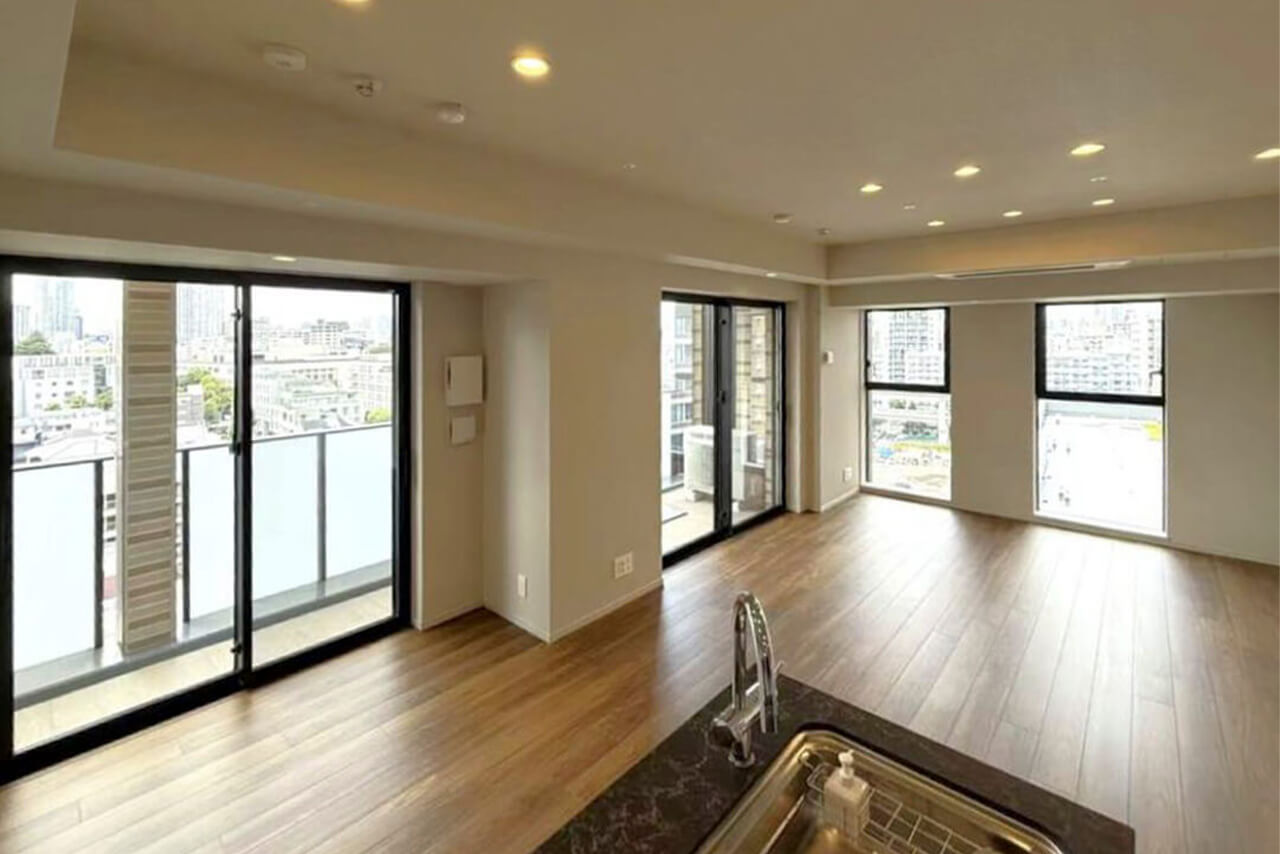 都営大江戸線・東京メトロ南北線「麻布十番」駅から徒歩4分。今回ご紹介する物件は約74㎡の2LDKです。2025年9月竣工のマンションで新築未入居の住戸。角部屋で窓が多く、通風良好です。収納スペースも多くすっきり整った暮らしができそうですね。