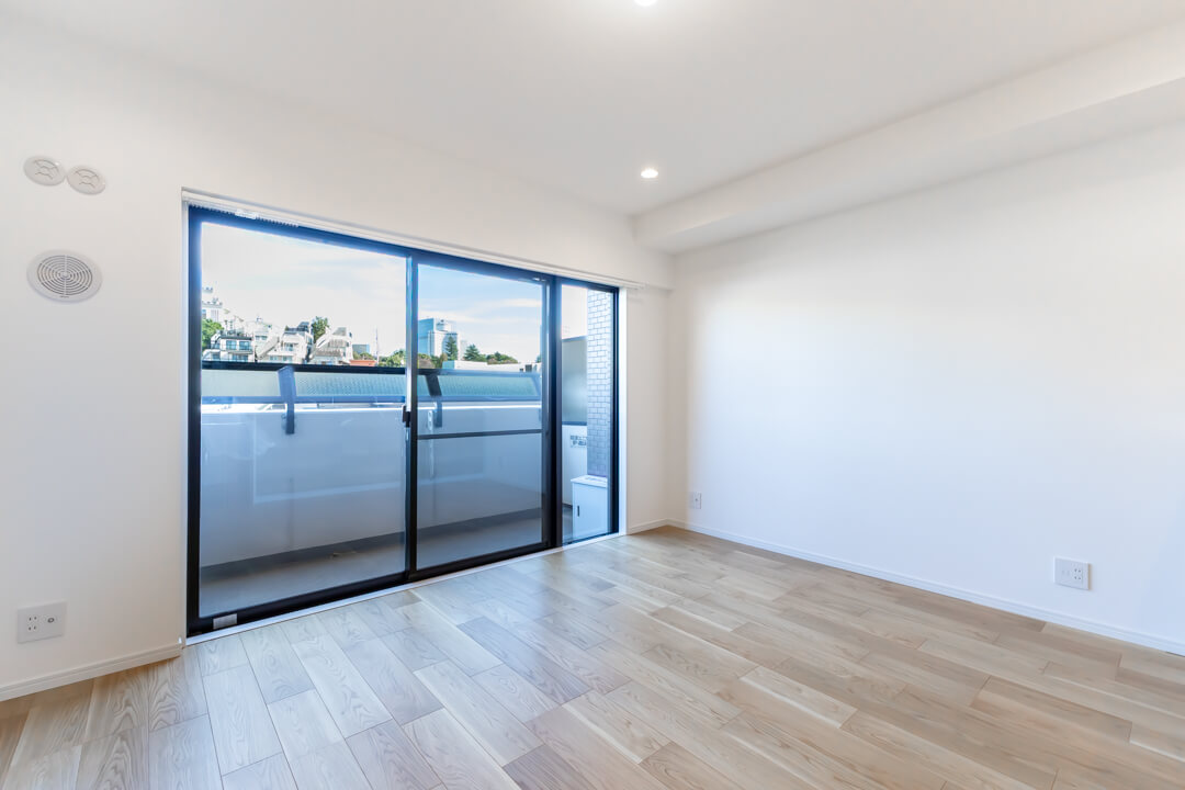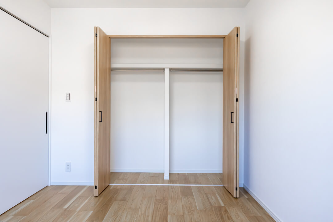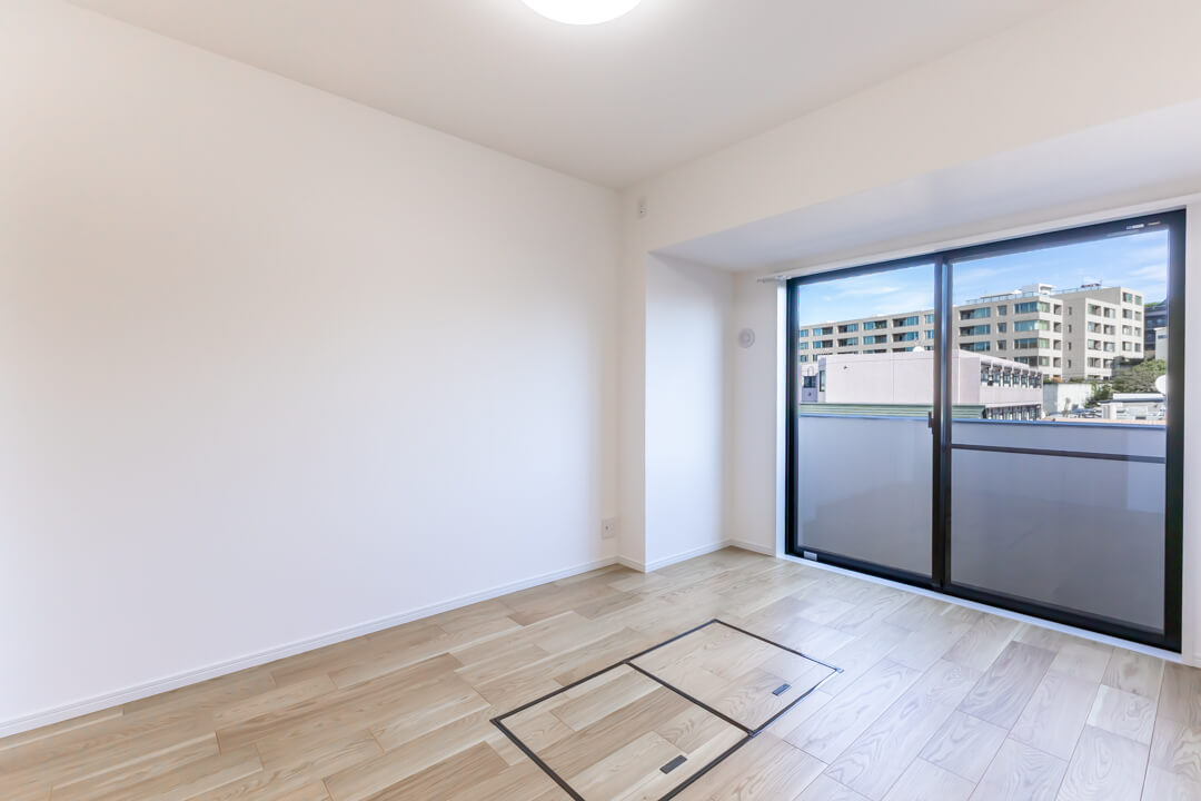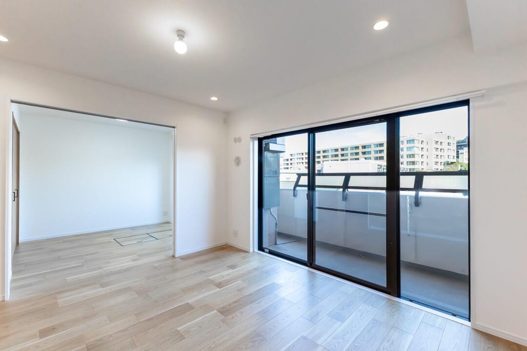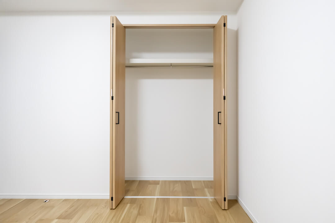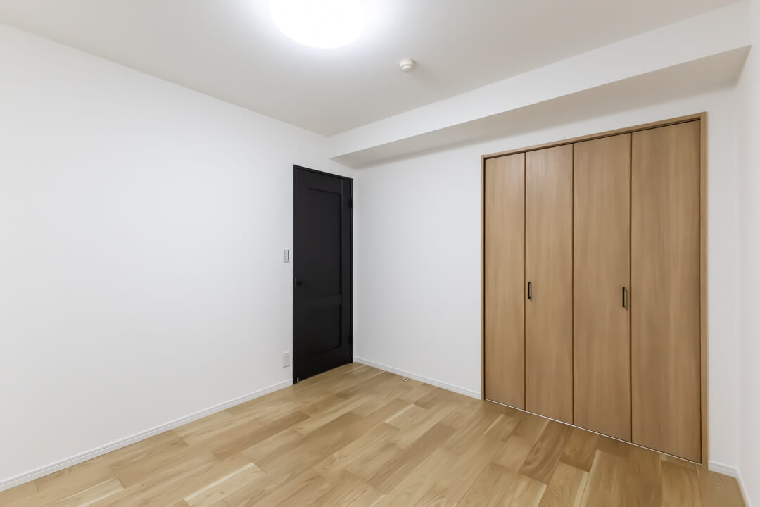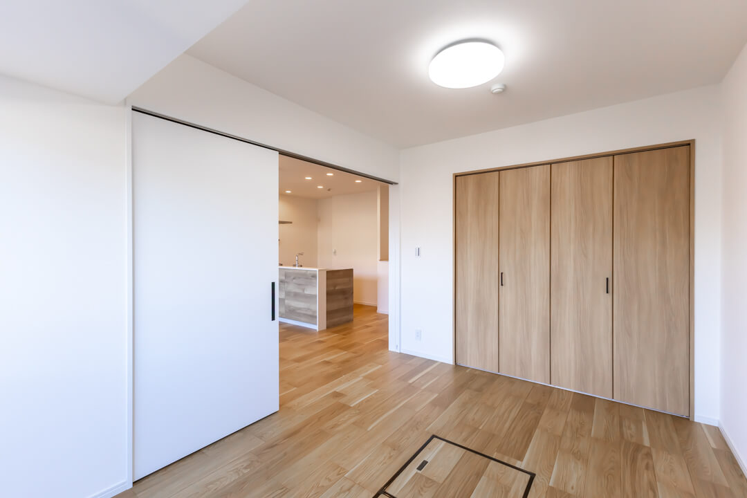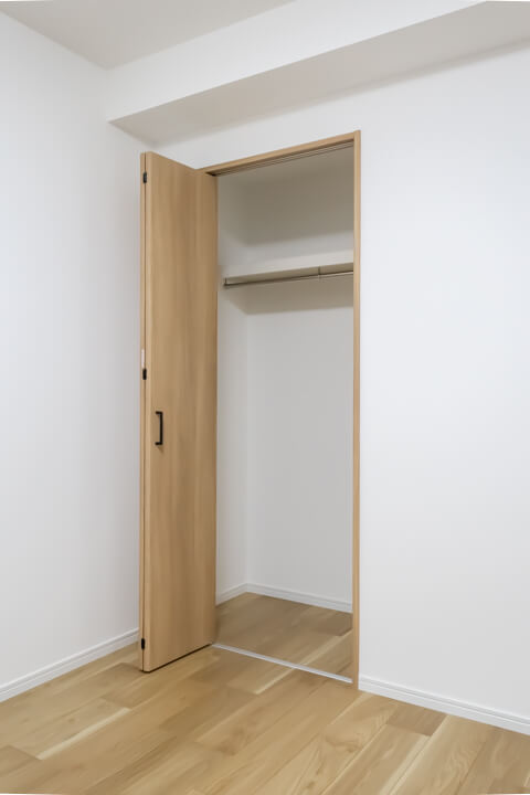 約6.5帖の洋室。東向きバルコニーに面していて、開放的な空間です。4枚折れ戸のクローゼット付きで収納力◎。LDKとは引き戸で仕切られているので、普段は扉を開放してゆったり、ゲストが来た時は扉を閉めてプライベート空間を隠すなど、フレキシブルに活用できます。
