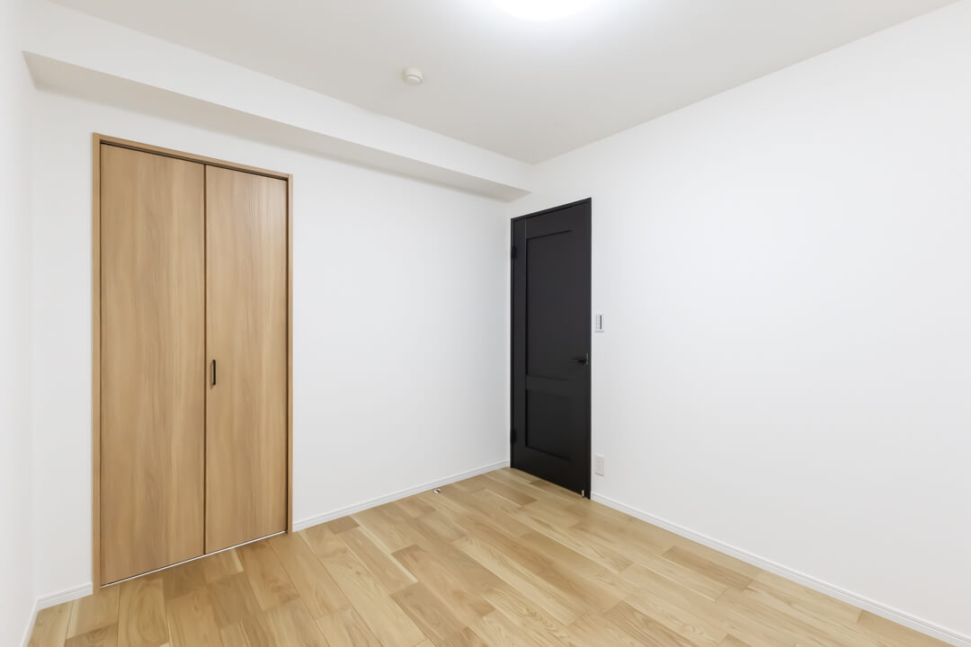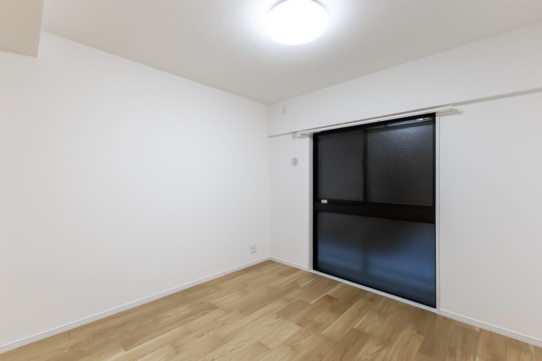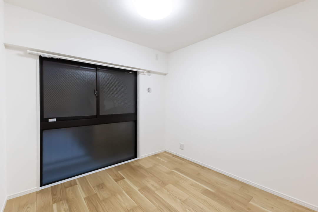 約5.7帖のサービスルーム。室外機置場に面する窓と、クローゼット付きのお部屋です。4枚折れ戸のクローゼットは開口部分が大きく、荷物を出し入れしやすいのが嬉しいポイントです。