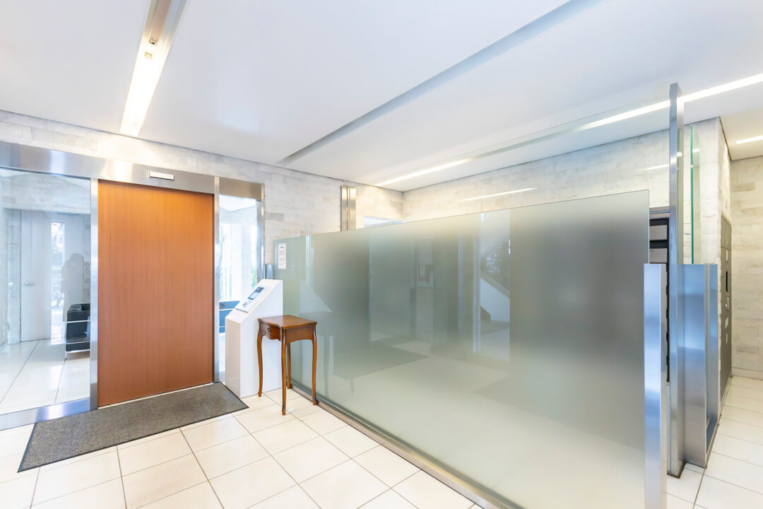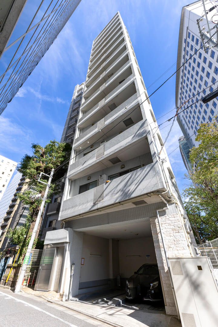2005年(平成17年)2月に竣工したこちらのマンション。鉄筋コンクリート造地下1階付14階建、総戸数は65戸です。レンガ調の白いタイルが積み重なったアプローチには上質な雰囲気が漂います。TVモニター付オートロック・エレベーターロック・防犯カメラを備え、高いセキュリティを確保。キーがなければエレベーターも利用できないため、不審者の侵入を二重に防止できます。共用部はホテルライクな内廊下設計で、天然大理石とシックなカーペットが使用されています。敷地内には駐車場と駐輪場を完備。空き状況は変動するのでお問い合わせください。細則はありますが、ペットの飼育が可能です。