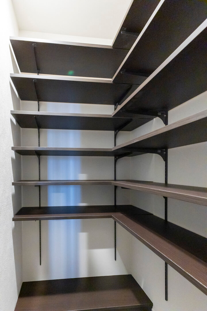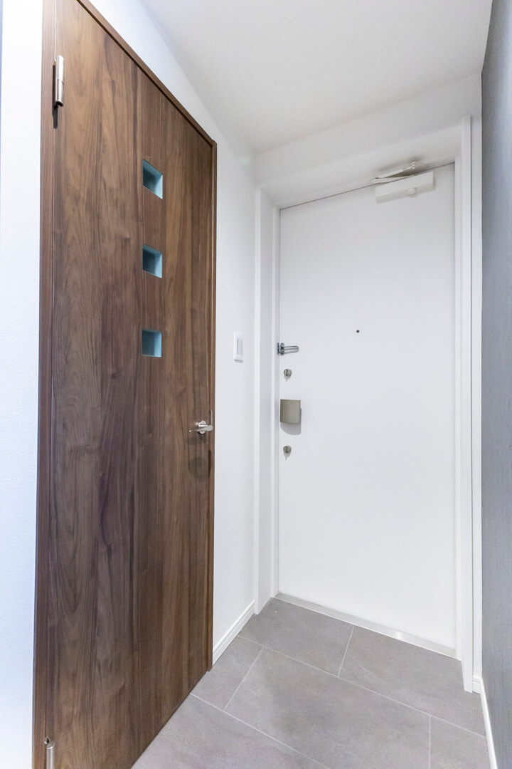 玄関には収納力のあるSIC(シューズインクローゼット)を完備。自由度の高い可動棚で、ロングブーツやレインシューズもすっきり収納できます。廊下にも物入があり、日用品ストックや掃除用品の収納に重宝しそうです。廊下が短く効率的な動線もポイントです。