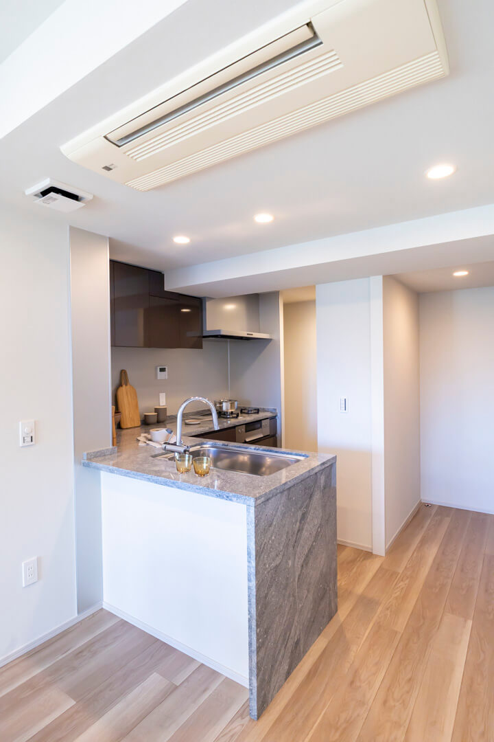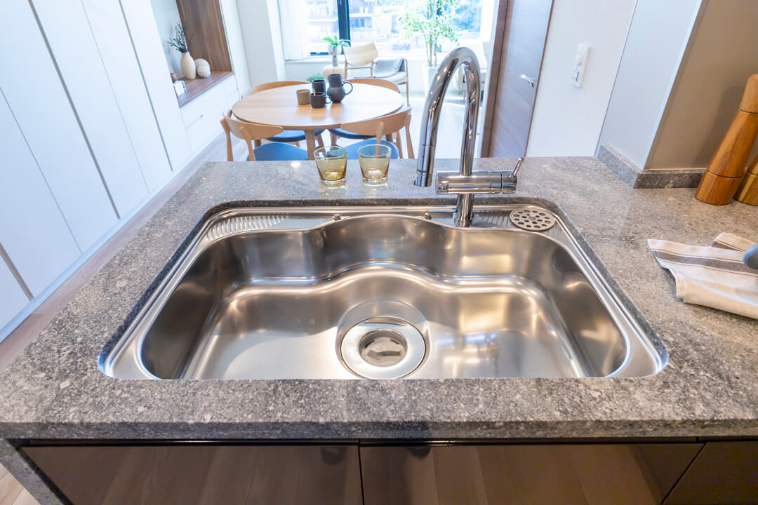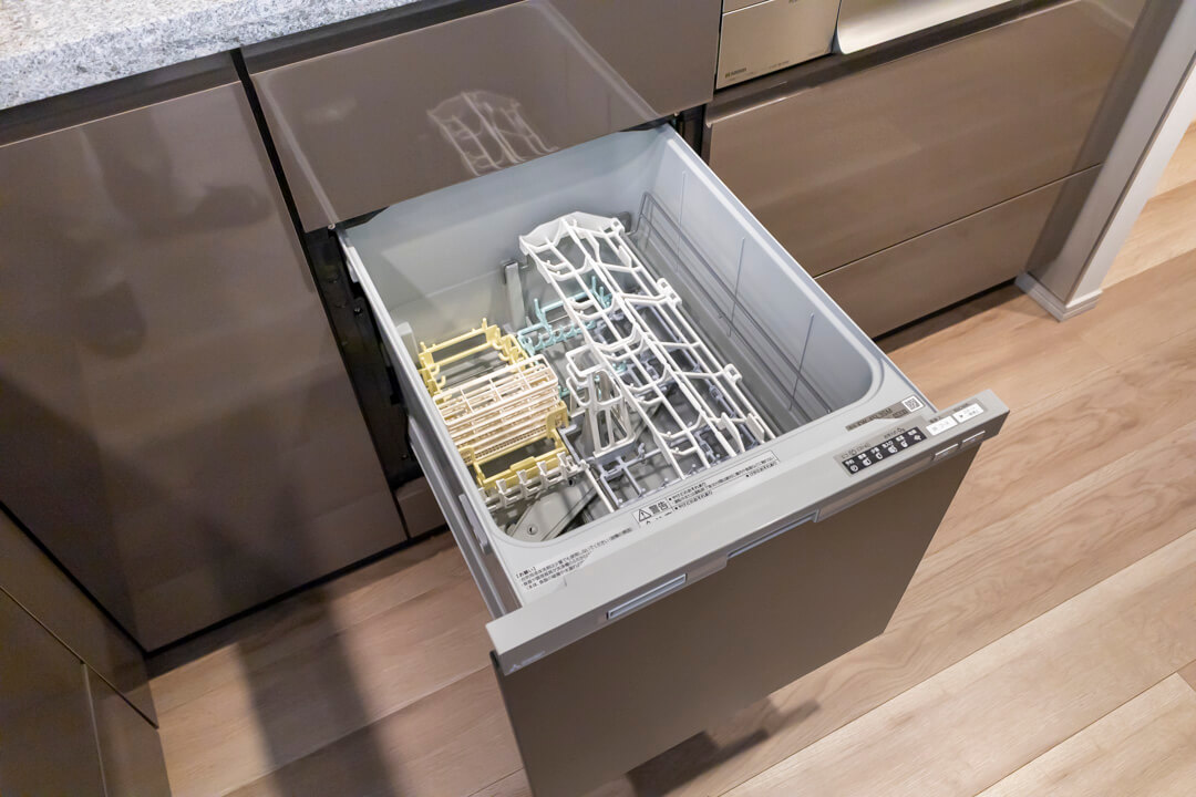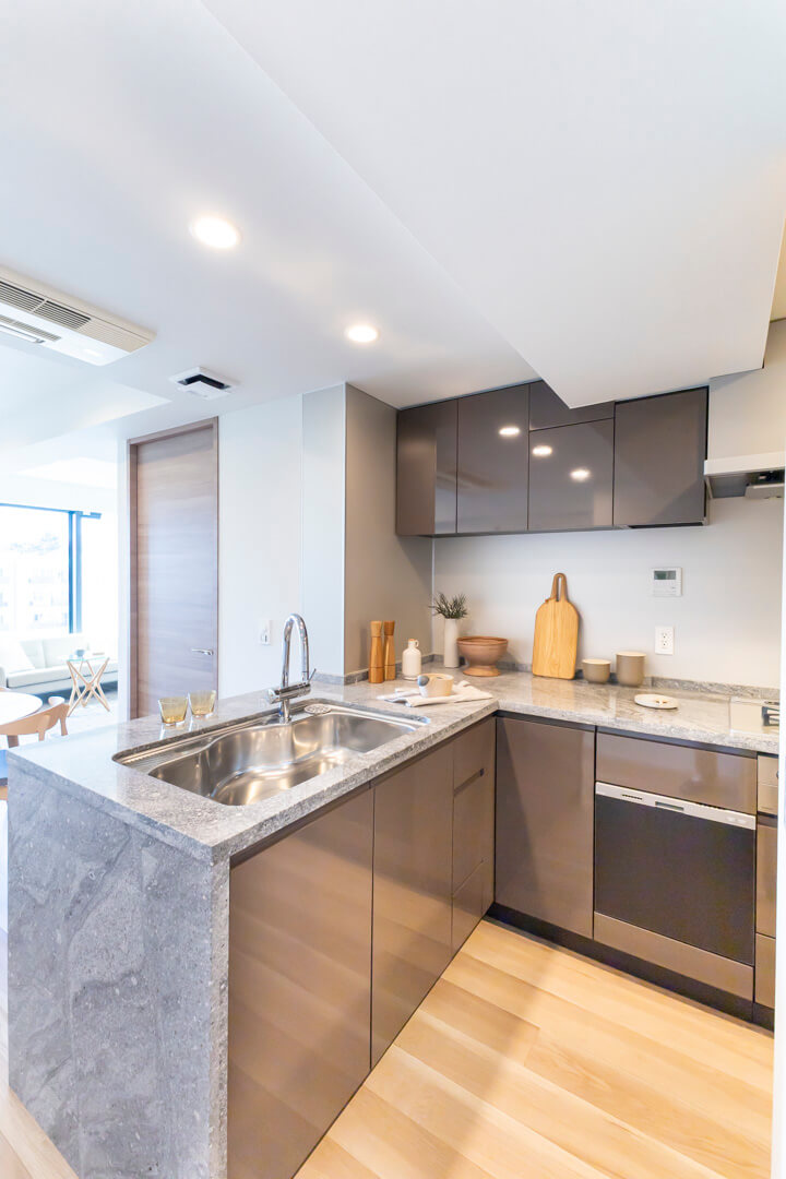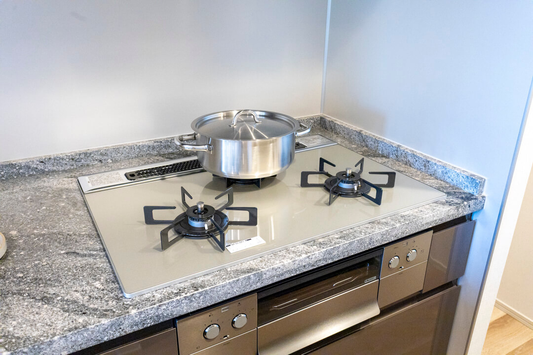 3口コンロ、グリル、ディスポーザー、食洗機付きと設備面も充実しています。シンクも広々としているので野菜などが洗いやすそうですよ。