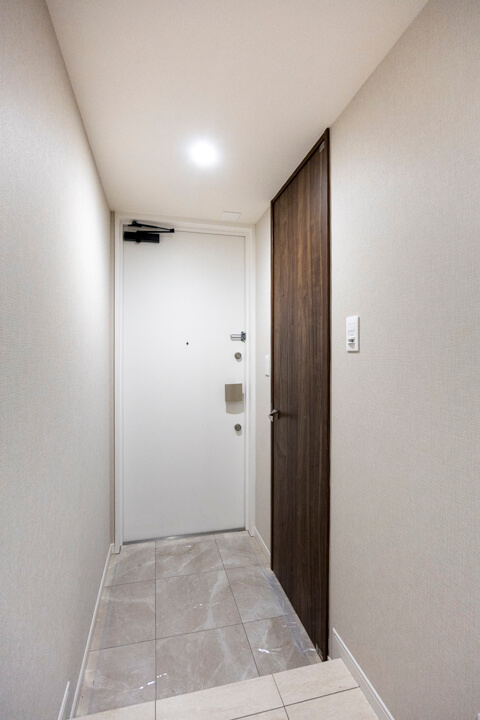 人感センサー搭載でいつも明るく出迎えてくれる玄関。荷物で両手が塞がっている時や夜遅く帰宅した時に、スイッチを探す手間がかからず助かります。入って左手には、収納力のあるSIC(シューズインクローゼット)を完備。自由度の高い可動棚で、散らかりがちな靴をすっきり収納できます。