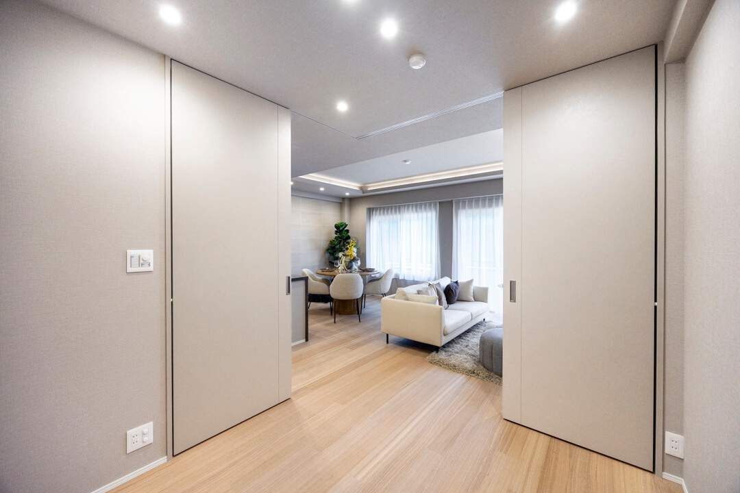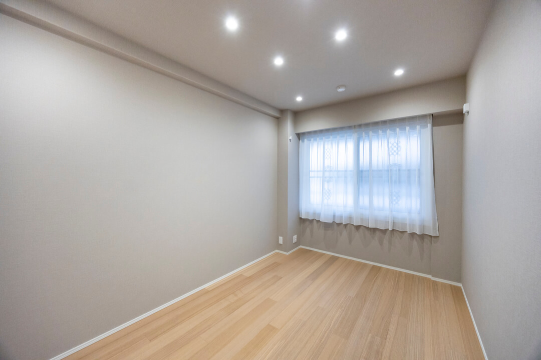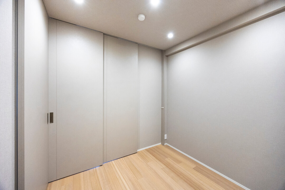 約4.0帖の寝室2。LDKとは引き戸で仕切られているので、ライフスタイルやシーンに合わせて使い分けると◎。扉を開放して拡張リビングにしたり、閉めてワークスペースやプライベート空間にしたり。フレキシブルに活用できます。