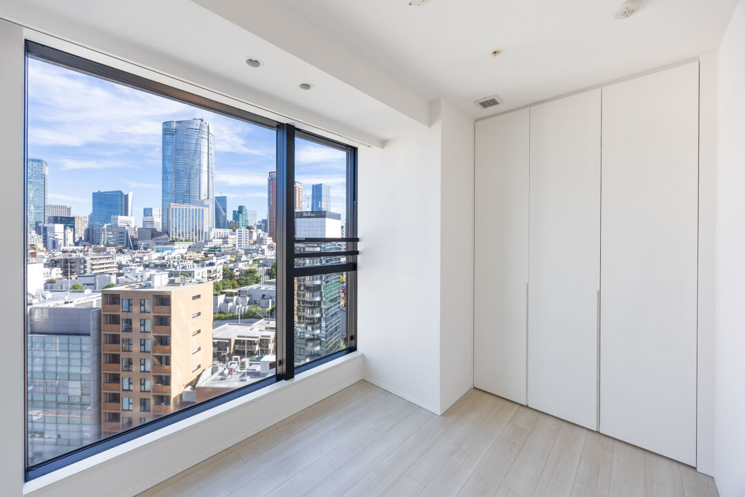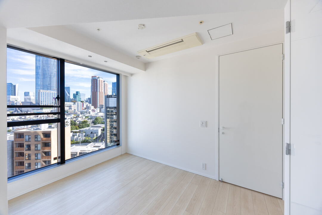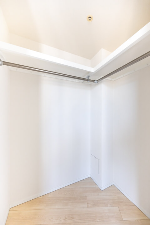 約7.1帖の洋室1。大開口の窓から遠く広がる青空を望めます。WIC(ウォークインクローゼット)完備で収納力◎。衣類はもちろん、トランクケースやゴルフバッグといった大きな荷物も収納でき、居室空間を有効活用できます。
