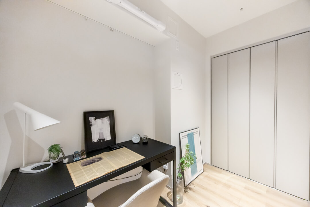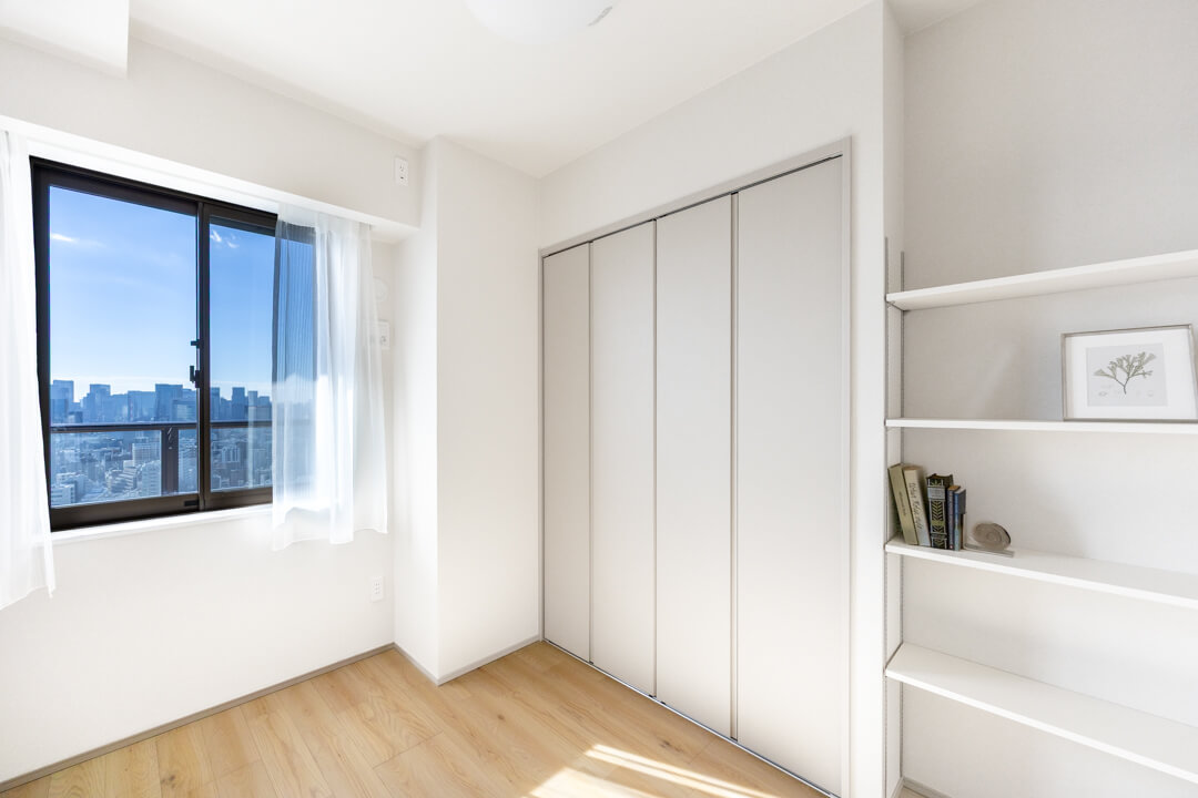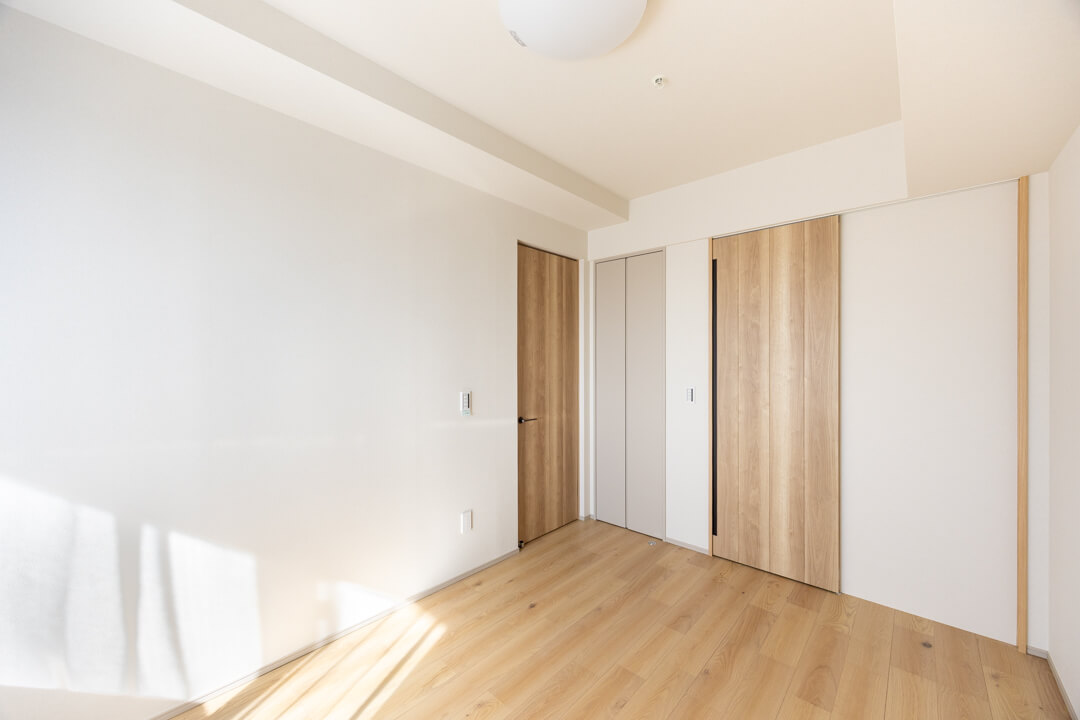 約3.2帖の洋室3は、リビングダイニングキッチンに隣接しています。引戸を開閉することによって、その場に応じて空間をフレキシブルに使えて便利。また、壁面にはピクチャーレールが設置されているので、壁を傷つけずに絵画やグリーンなどを飾ることができます。もちろんクローゼットも付いています