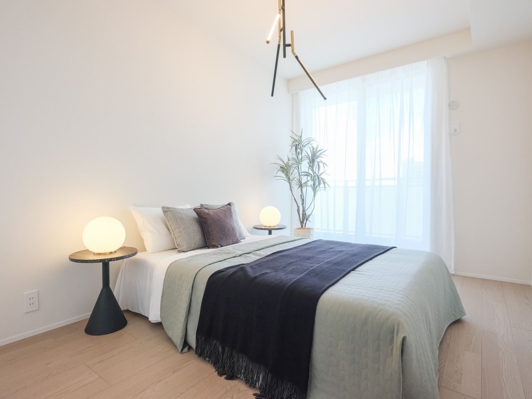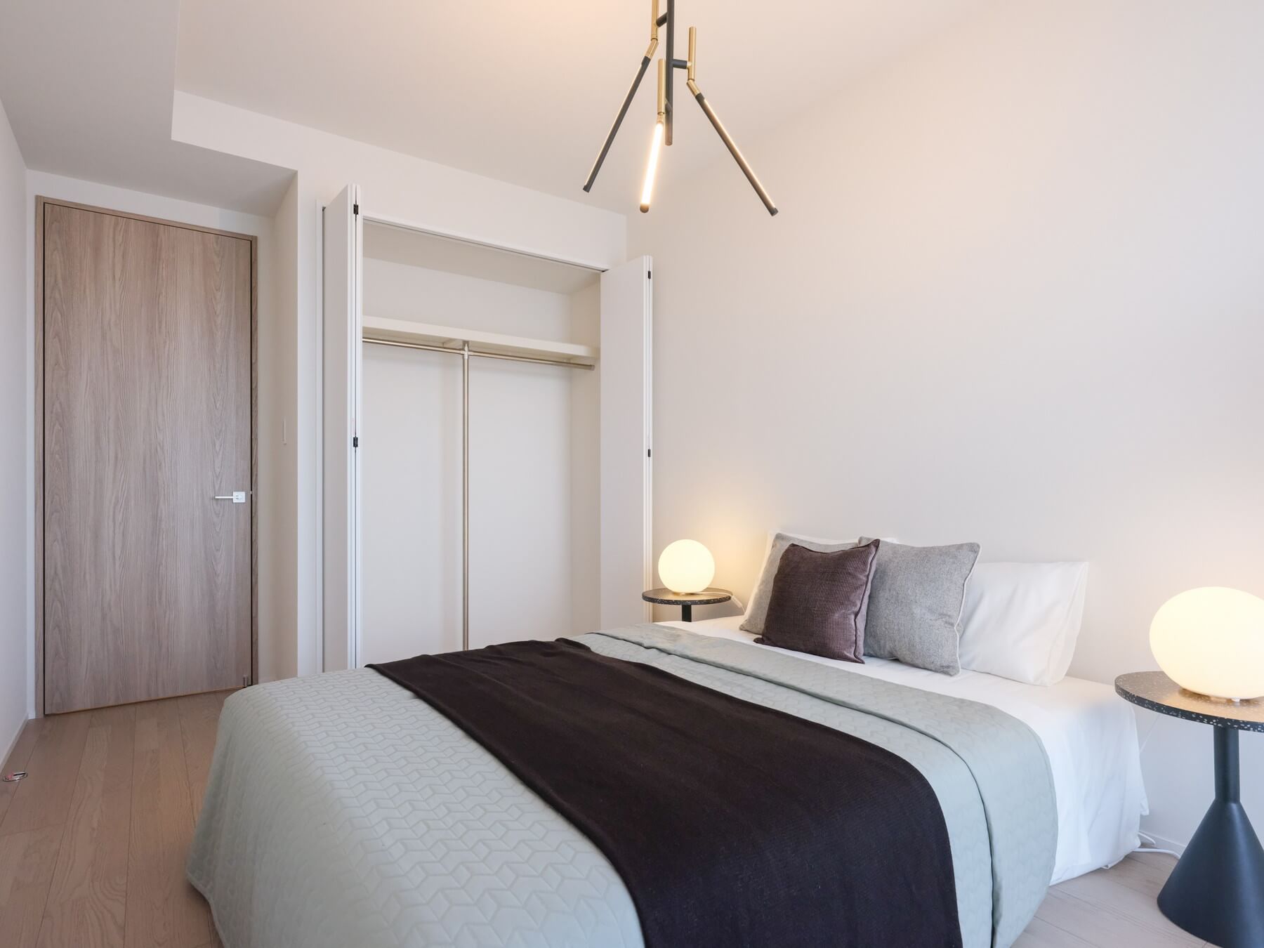 約6.6帖の寝室1。洋室で最も広く、主寝室にぴったりです。バルコニーに面する窓から朝日が差し込み、爽やかな朝を迎えられそうですね。大容量のクローゼット完備で、居室空間を有効活用できそうです。