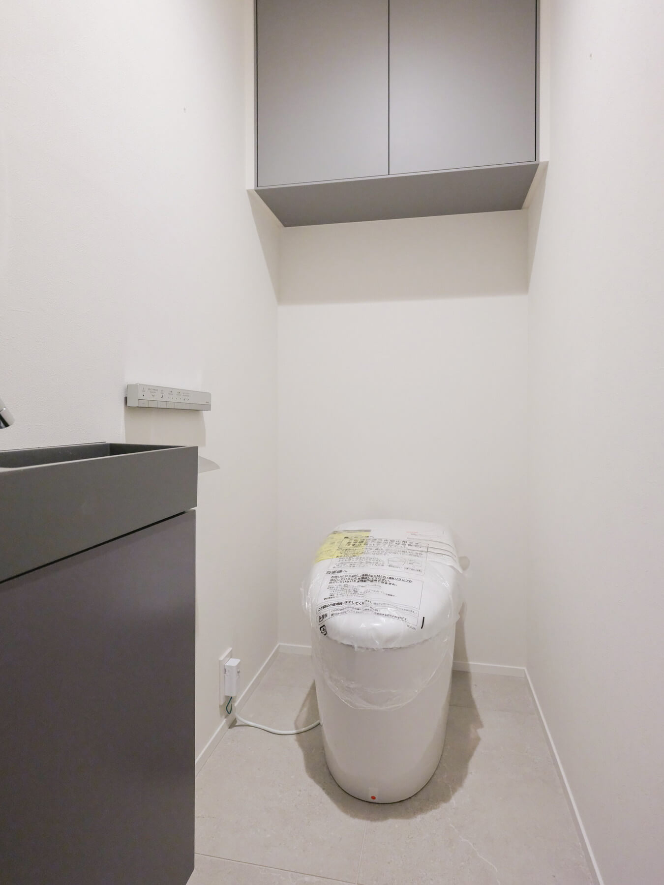 廊下に面していて独立性の高いレストルーム。TOTO製の洗浄便座付トイレに新規交換済みです。手洗い器付きなのですぐに手を洗うことができ、ゲストを洗面室まで案内する手間もかかりません。