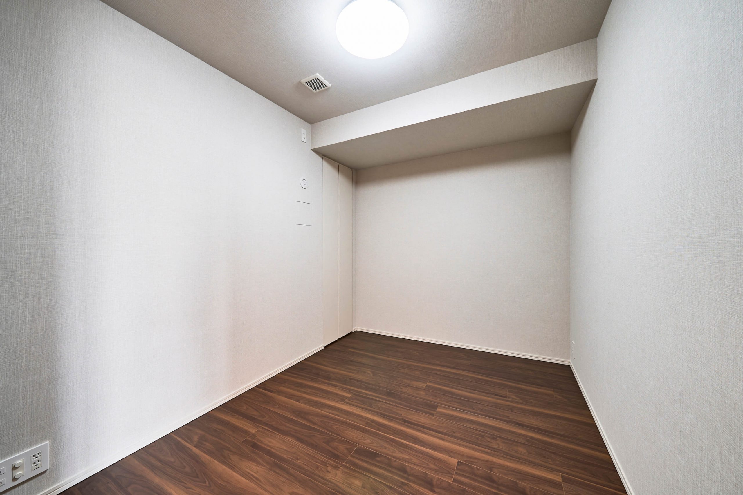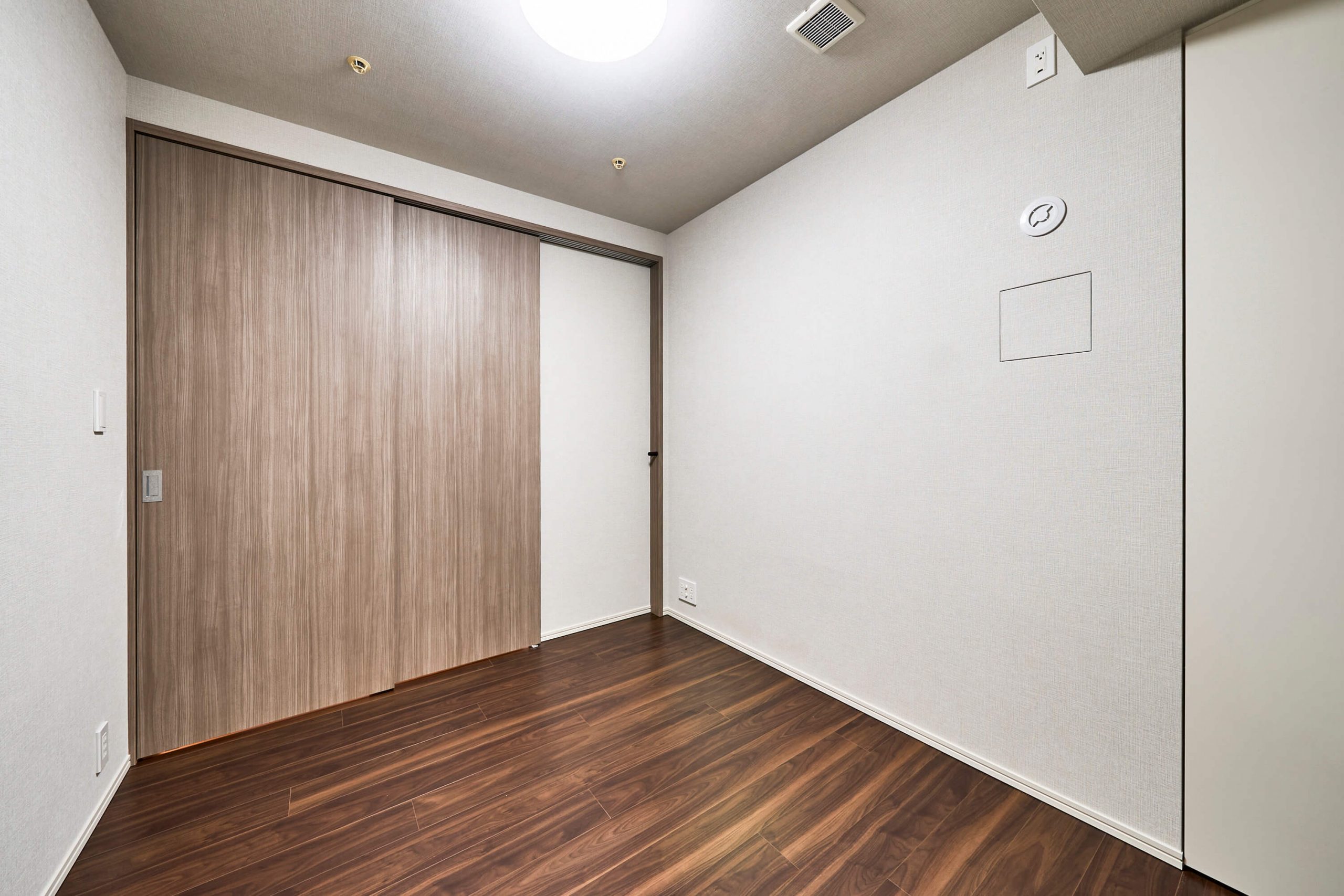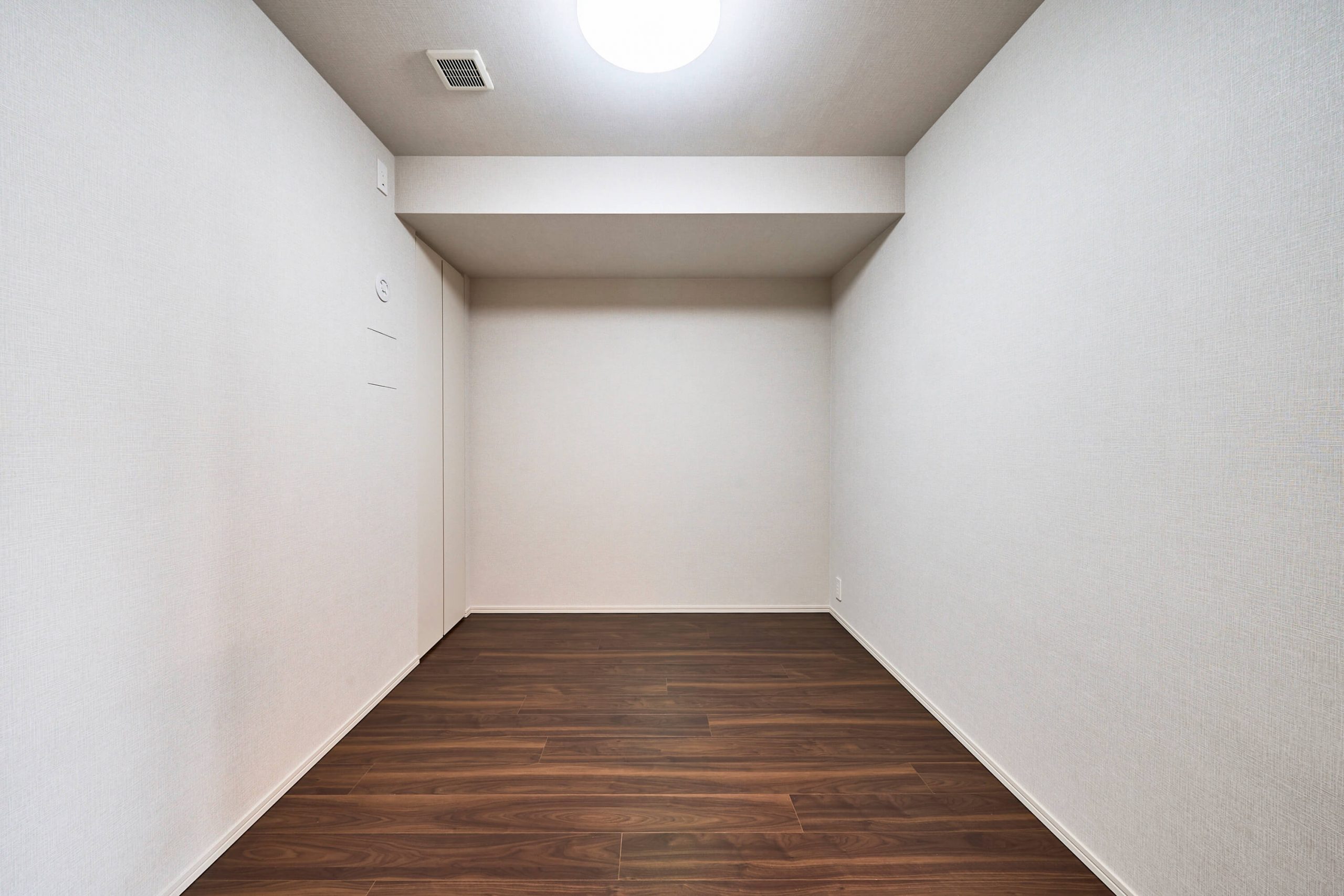 キッチン横に位置する約4.5帖の洋室2。ワークスペースや趣味部屋としても使いやすいサイズ感です。扉の開口部が広く、全開にすると開放的に過ごせます。クローゼットも備わっていますよ。