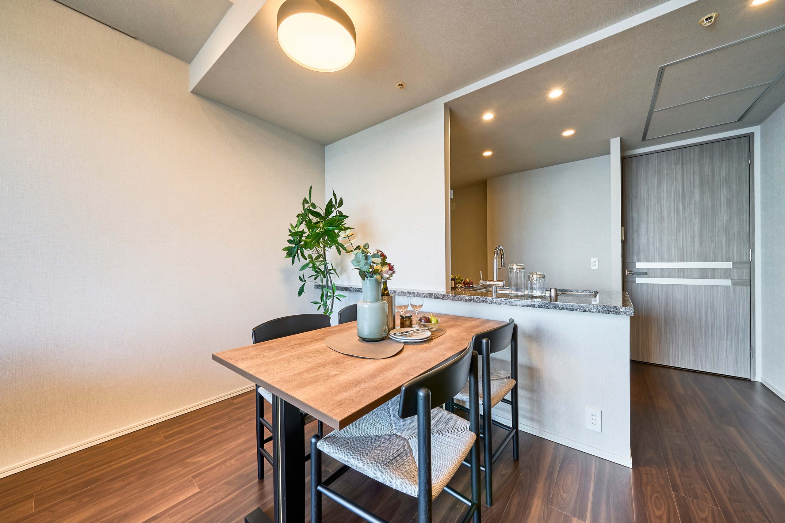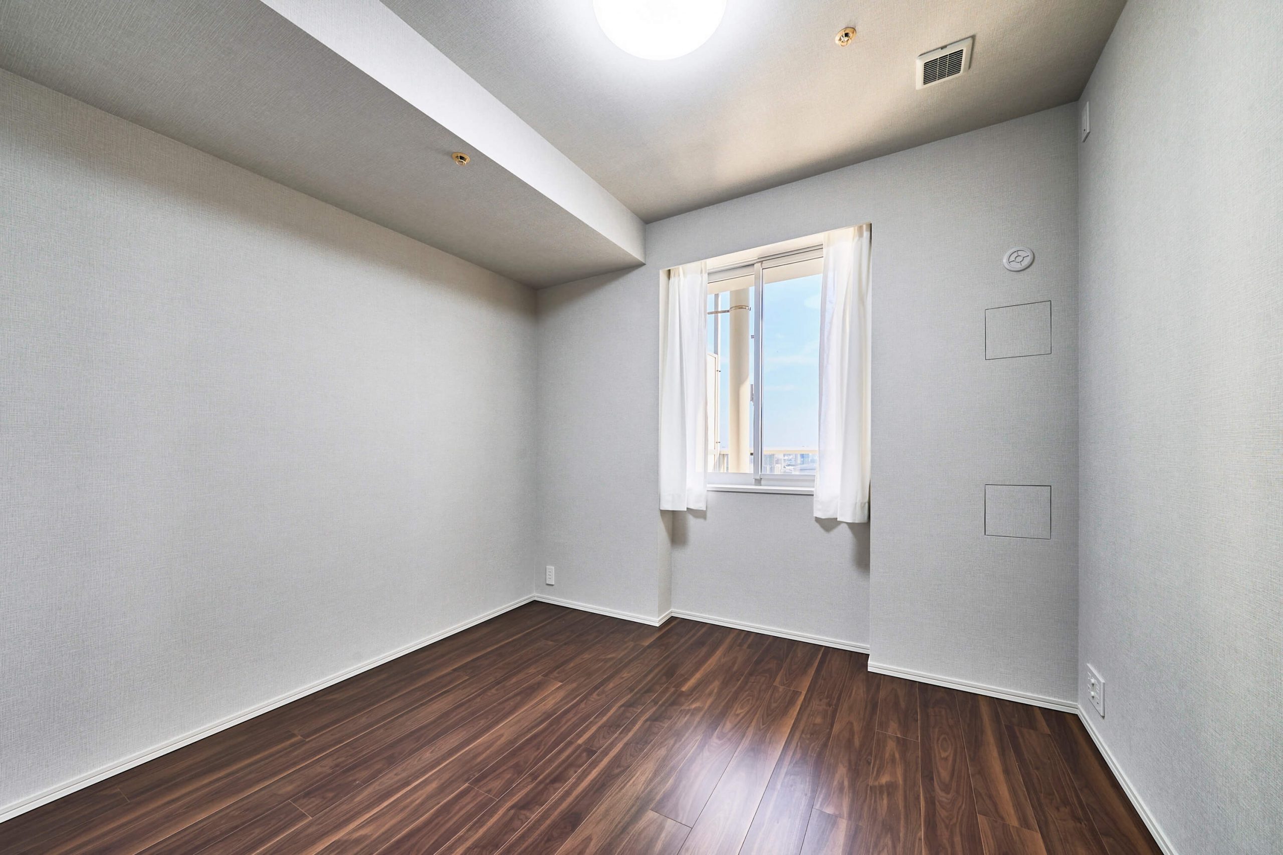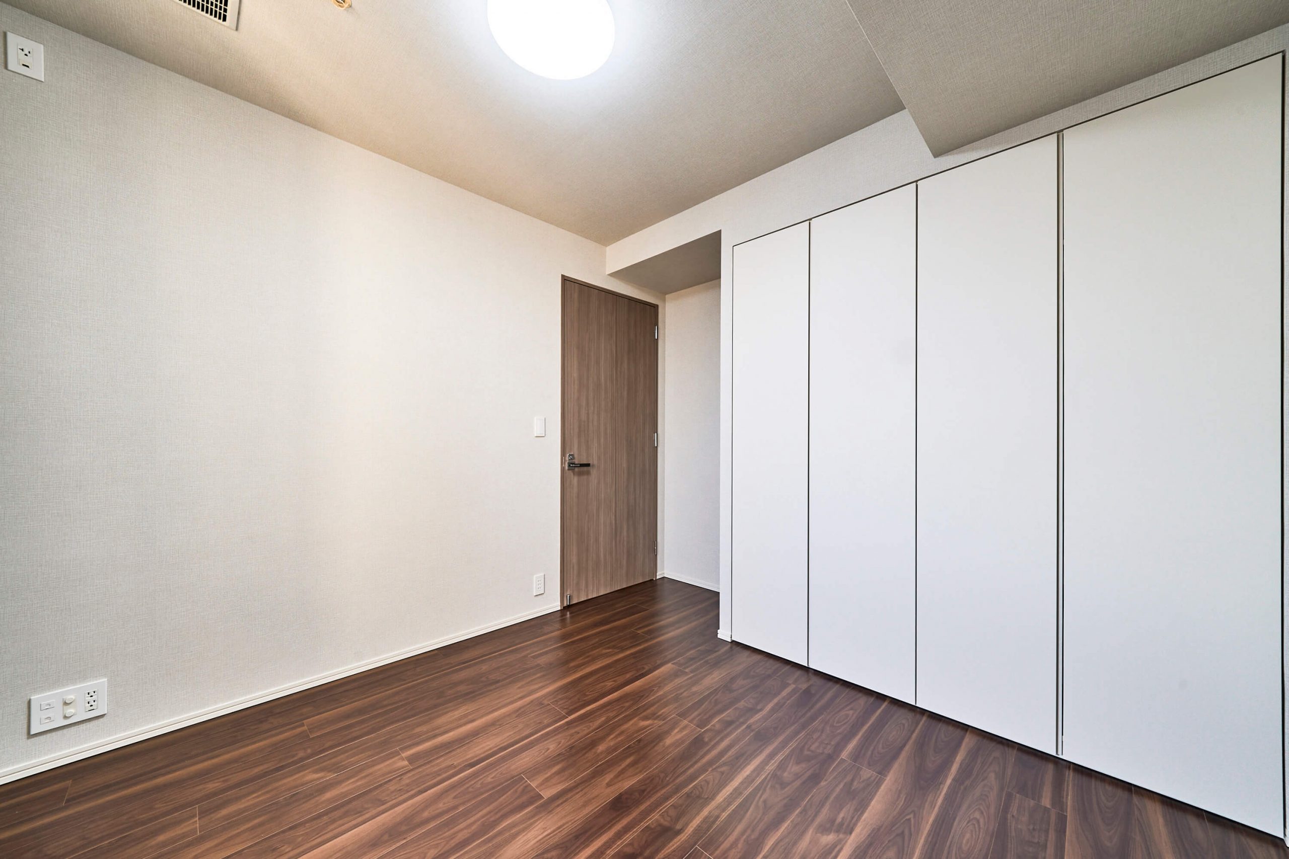 キッチン横に位置する約4.5帖の洋室2。ワークスペースや趣味部屋としても使いやすいサイズ感です。扉の開口部が広く、全開にすると開放的に過ごせます。クローゼットも備わっていますよ。