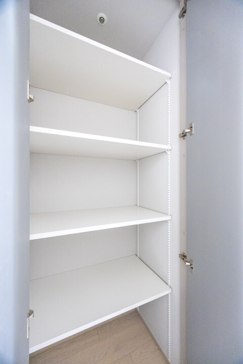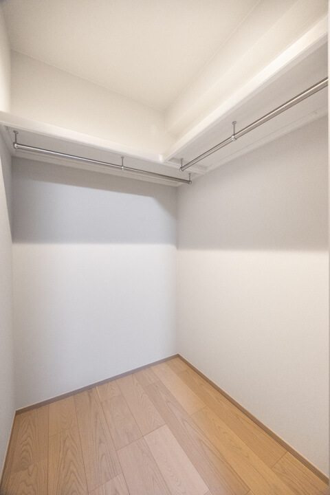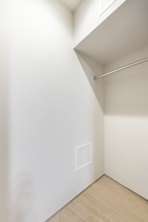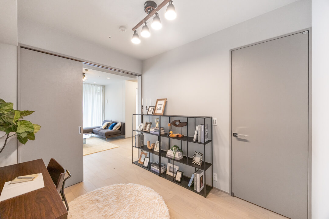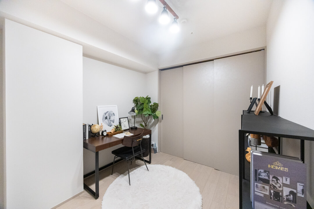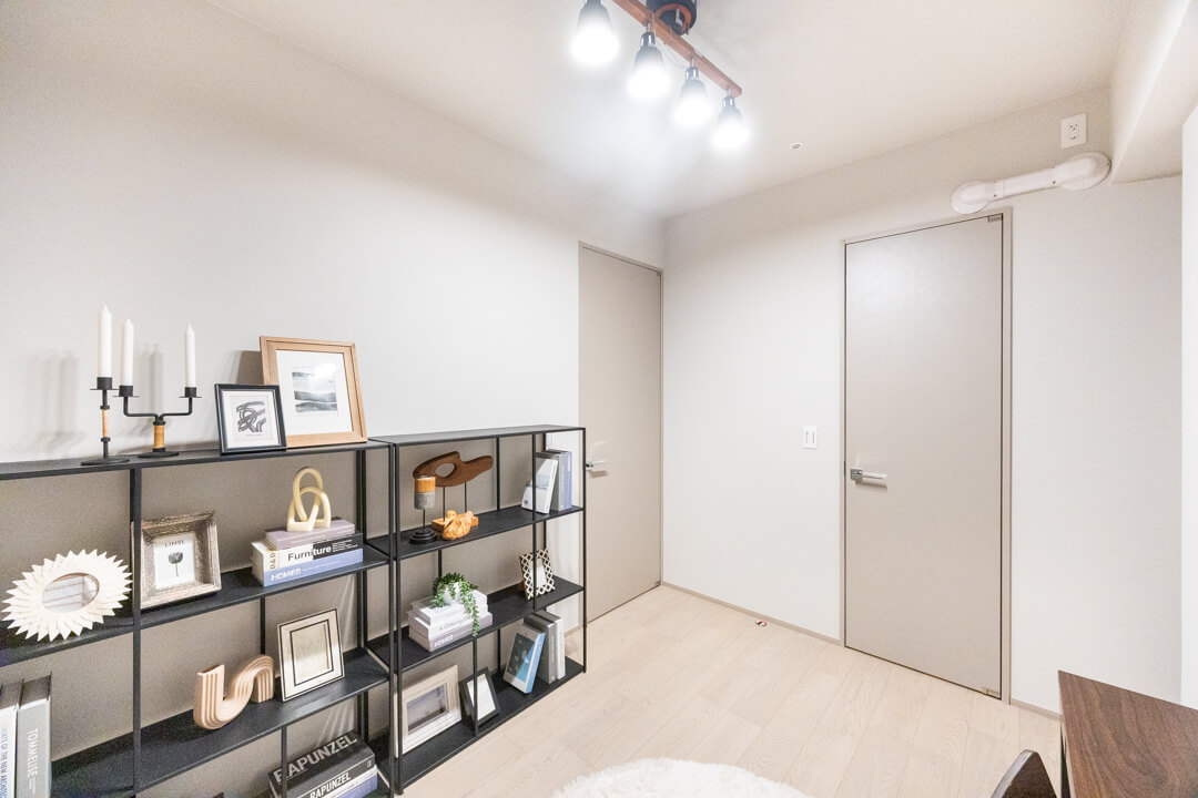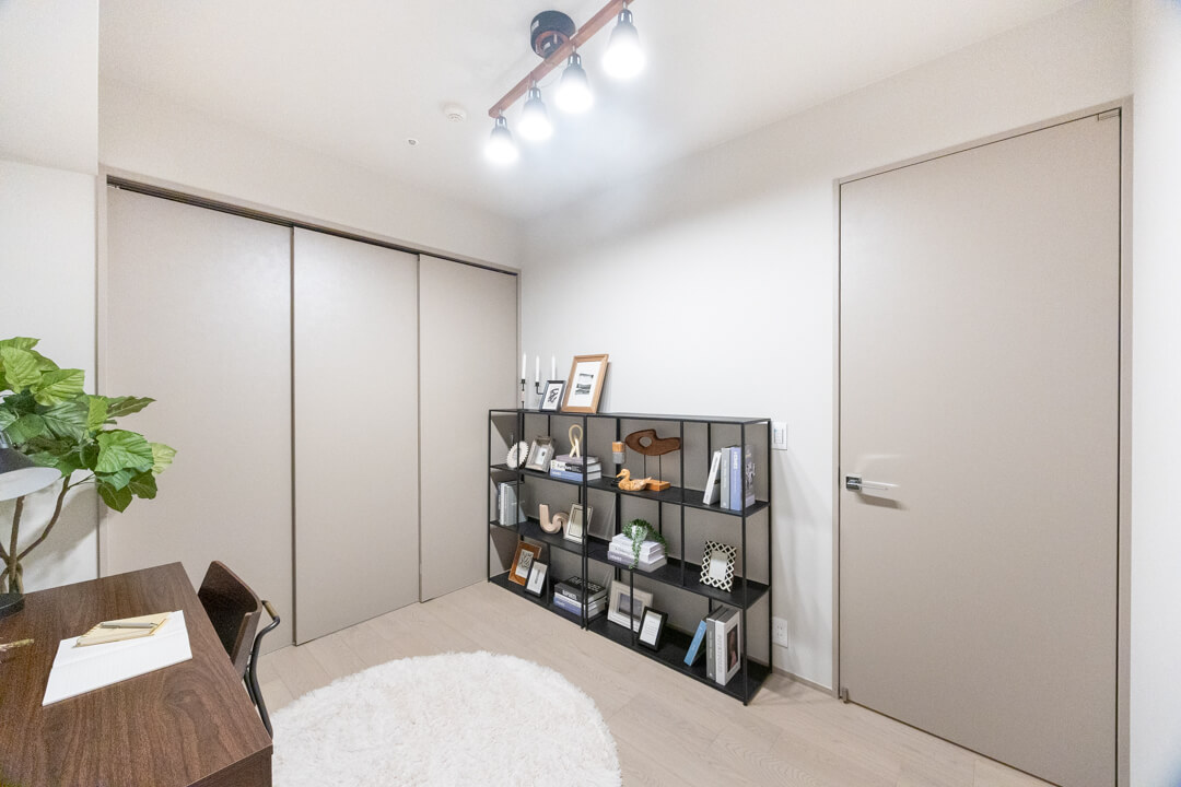 リビングと隣接した約4.8帖のサービスルーム。扉の開口部が広く、リビングと繋げてより広々と過ごせます。廊下からも出入りできる便利な動線もポイント。ワークススペースや趣味部屋としても使いやすいお部屋です。WIC(ウォークインクローゼット)も備わっています。
