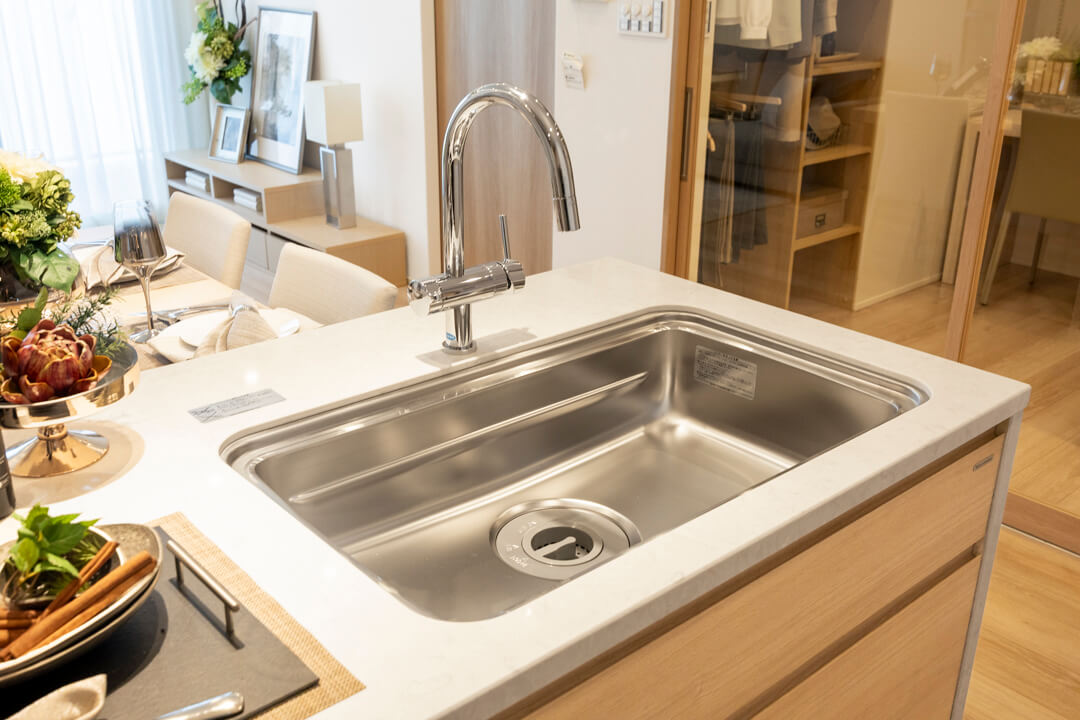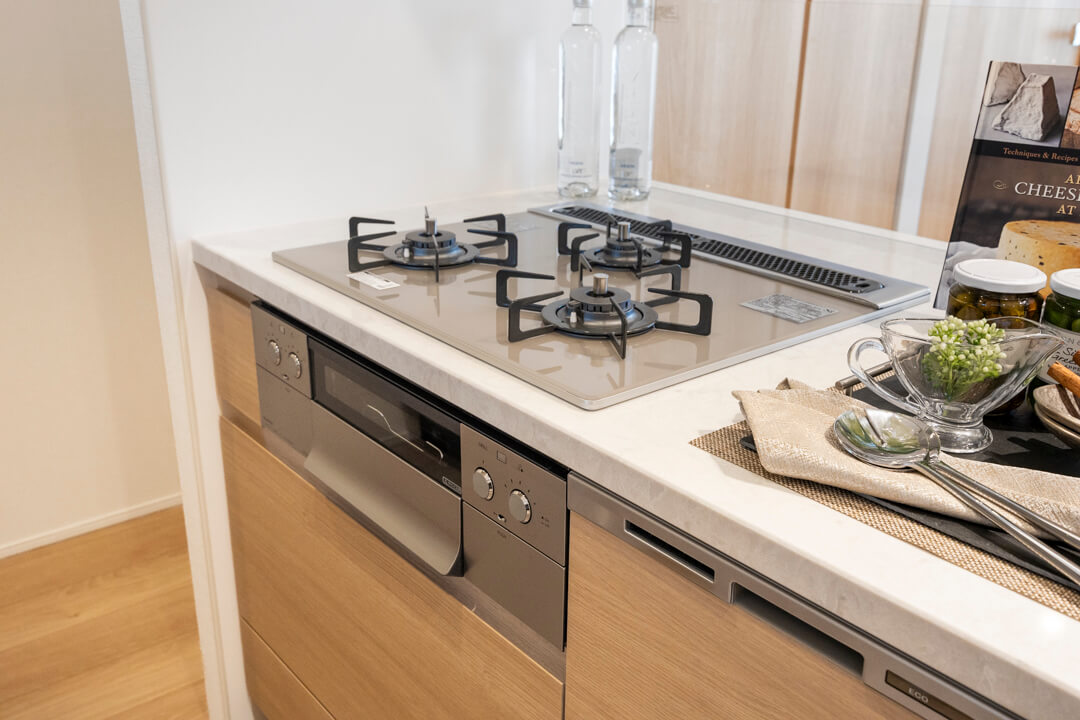 グリル付3口ガスコンロや浄水器一体型水栓、食洗機など、お料理好きの方に嬉しい設備が揃っています。効率良く調理でき、レパートリーも増えそうですね。さらに、シンクにはディスポーザーが付いています。生ごみ処理の手間が軽減され、悪臭の原因を防いでくれますよ。