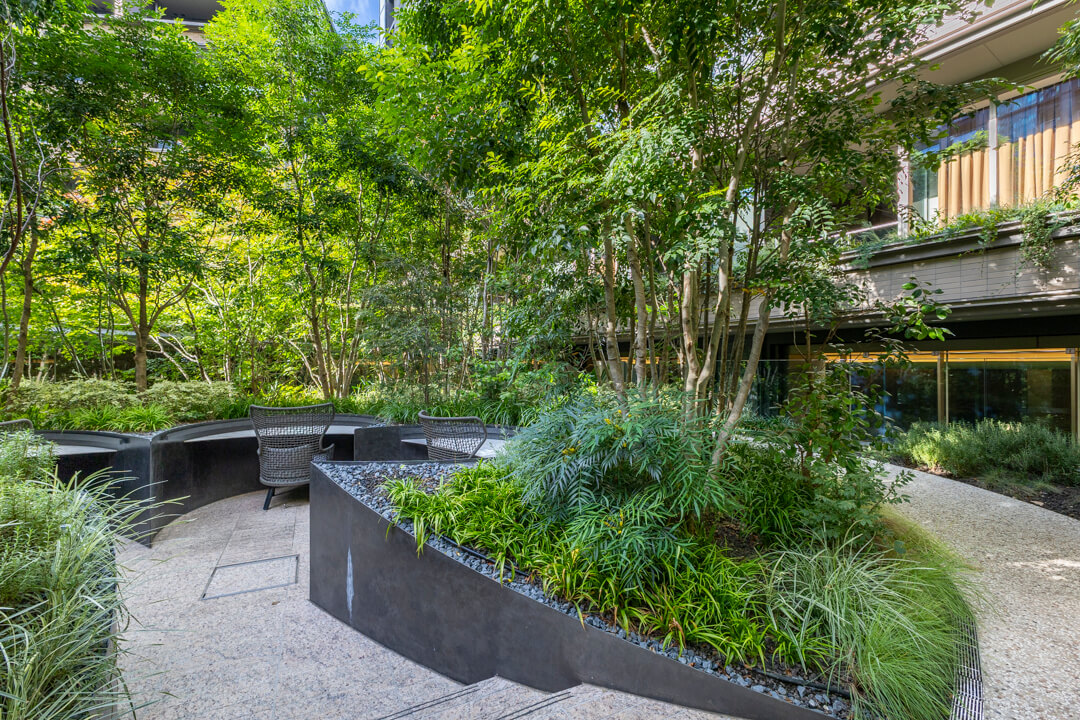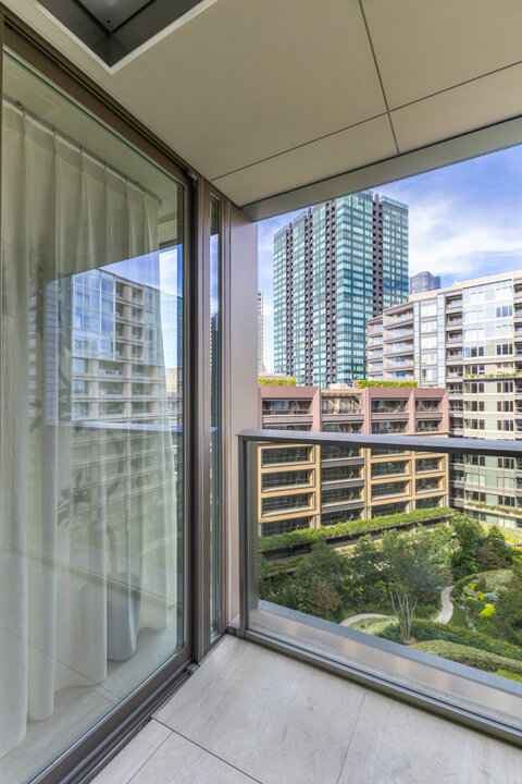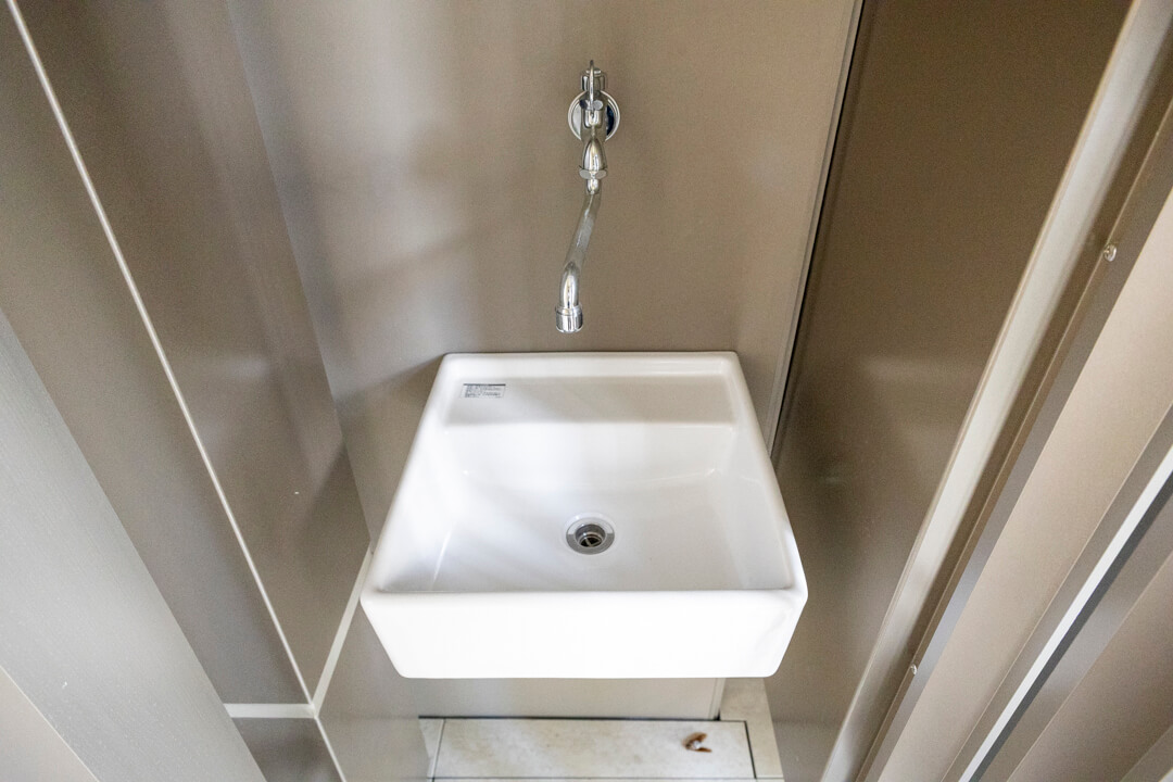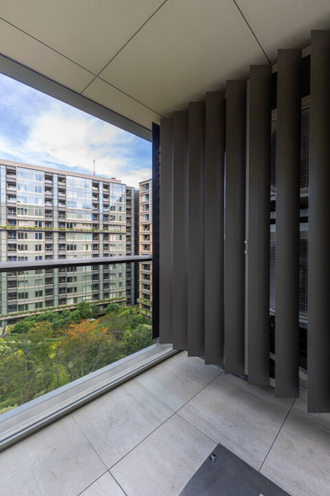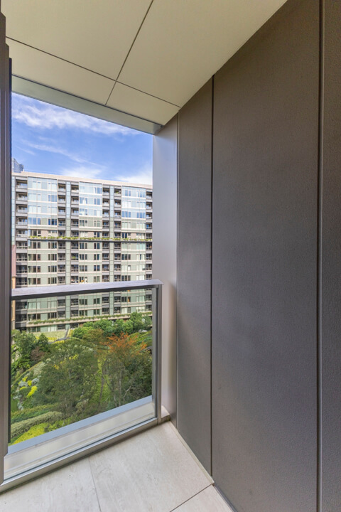 バルコニーは2ヶ所にあり、リビングと寝室に接続しています。眼下に中庭の豊かな緑が広がり、開放感たっぷり。スロップシンク付きなのも嬉しいポイントです。