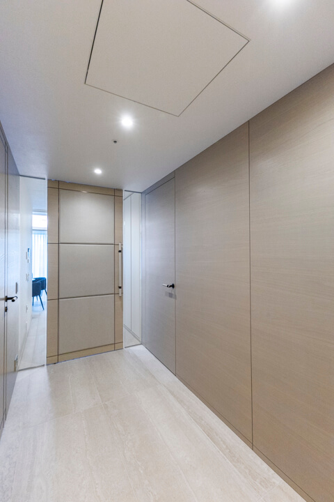 SICの奥にはバトラースペースを完備。クリーニングや宅配物の受け取り、ゴミ出し等ができ、快適な毎日が叶います。こちらのサービスはパークマンション棟の入居者様限定です。