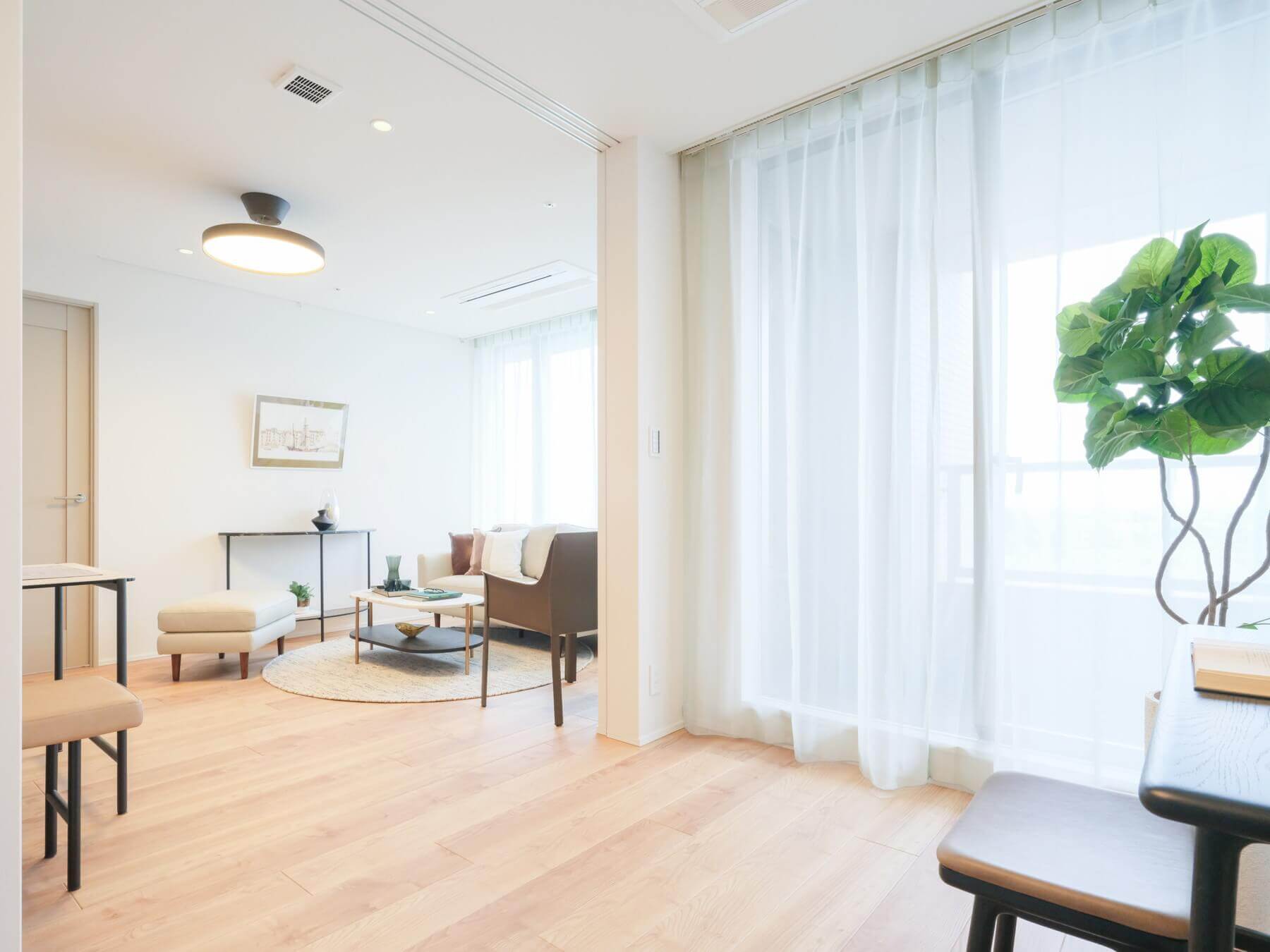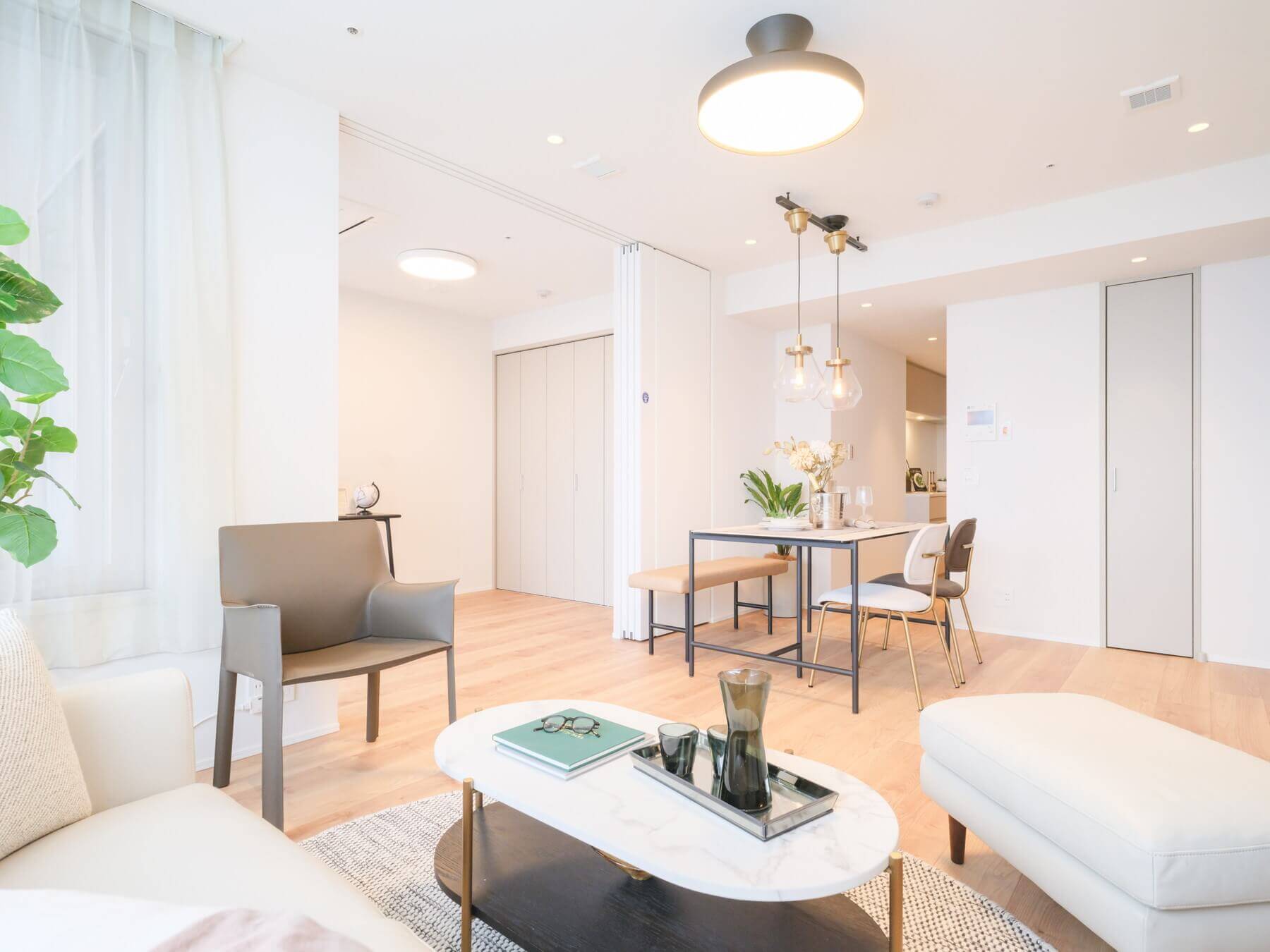 隣接する洋室との間仕切り戸を開ければ、15帖超の一体空間に。開放感がUPし、さらに広々と過ごすことができます。ゲストが来た時に活躍しそうですね。