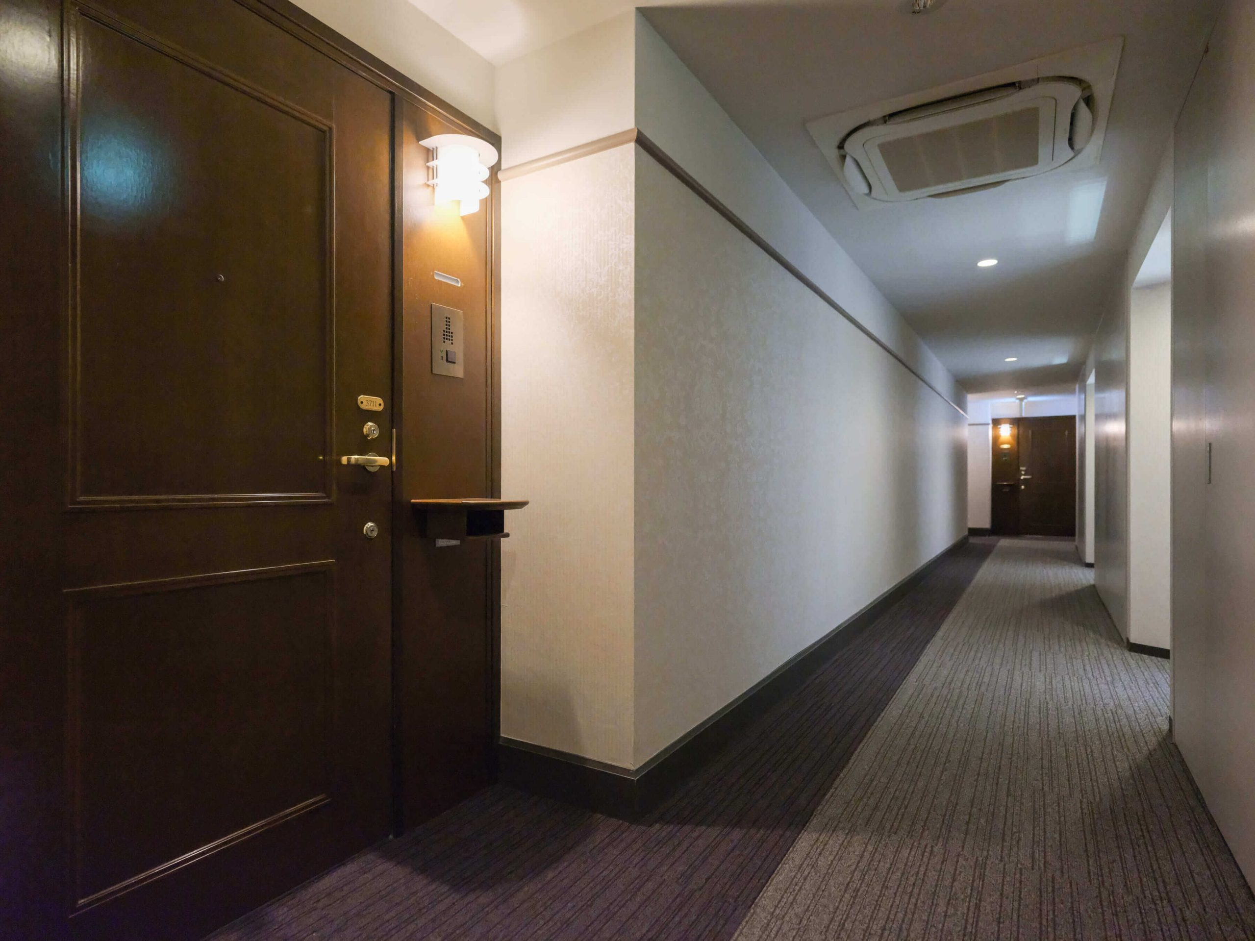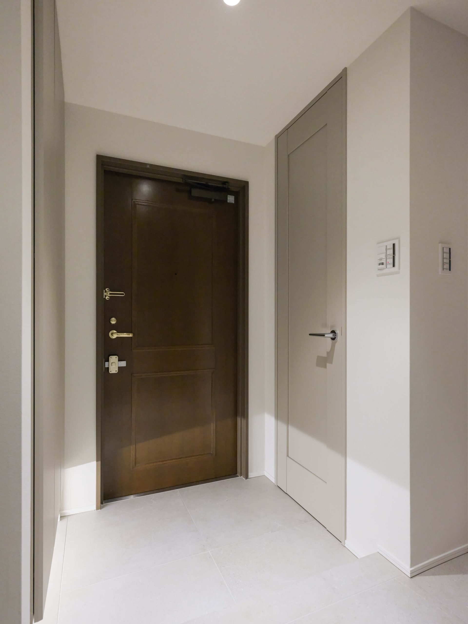 廊下に面していて独立性の高いレストルーム。TOTO製の洗浄便座付トイレに新規交換済みです。タンクレス仕様でスタイリッシュ。正面には手洗いカウンターがあり、ゲストを洗面室まで案内する手間がかかりません。