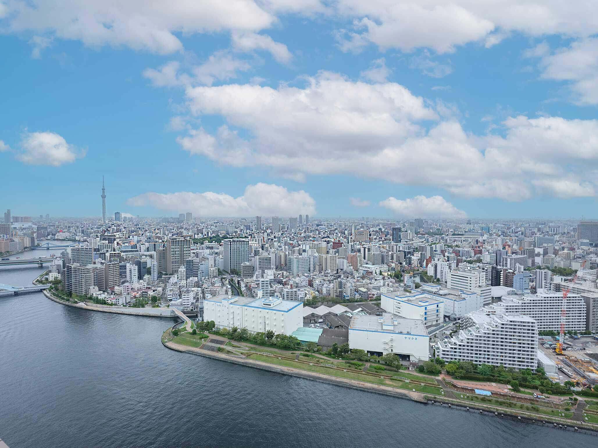バルコニーは2ヶ所に設置。リバーサイドならではの風景と遠く広がる青空、スカイツリーを望むことができます。都会のビル群と隅田川のコントラストが織りなす夜景もおすすめです。