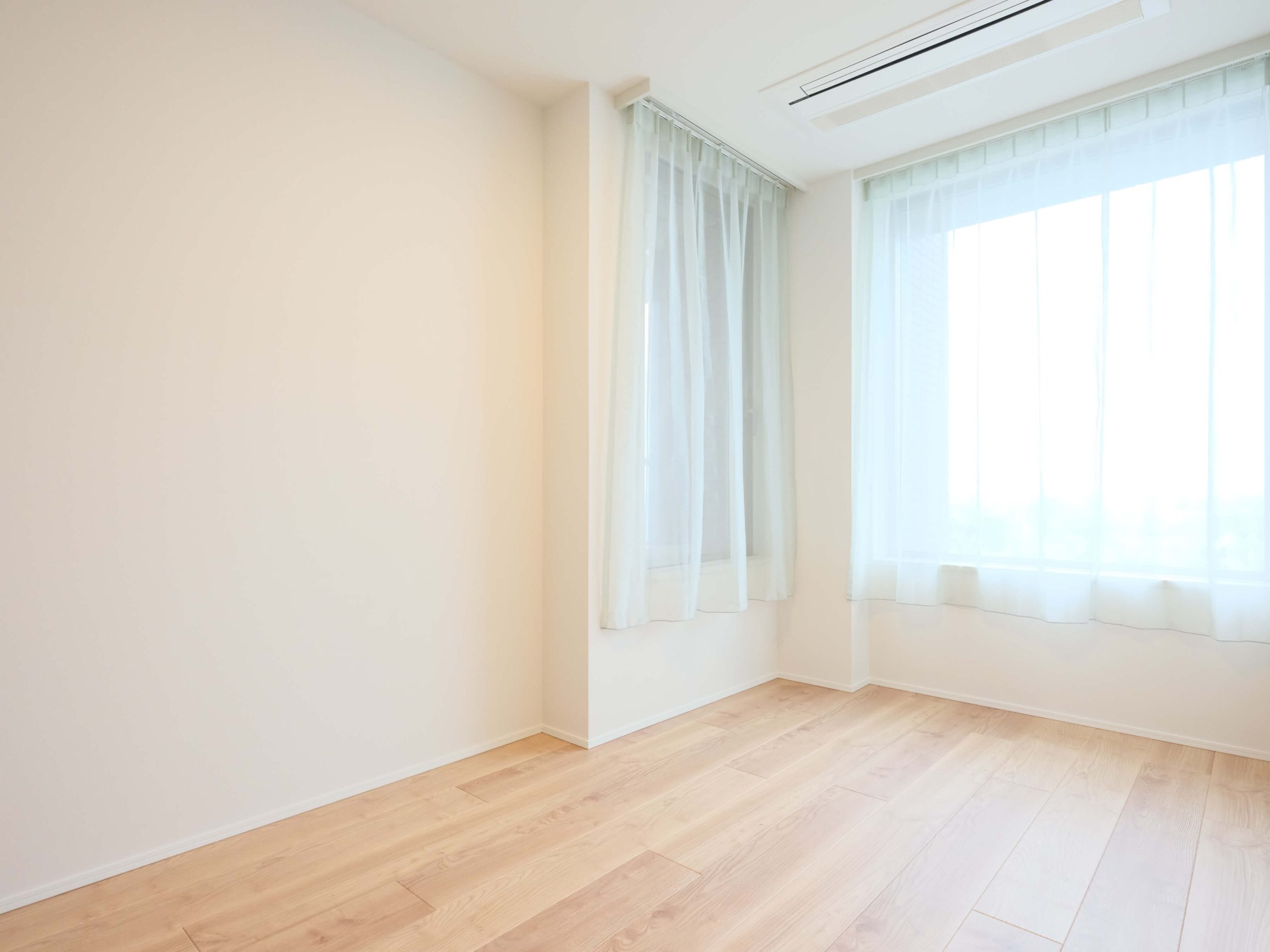 約5.1帖の洋室2。北東2面採光でやわらかな光が降り注ぎます。壁いっぱいにクローゼットが並び、収納力◎。子ども部屋にいかがでしょうか?