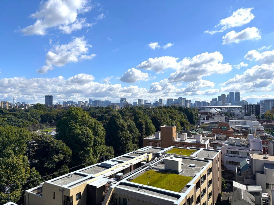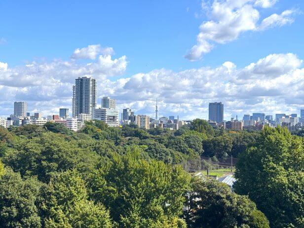 バルコニーからの眺望です。新宿御苑の緑が望める心地良い景色。天候によっては東京スカイツリーも望めます。