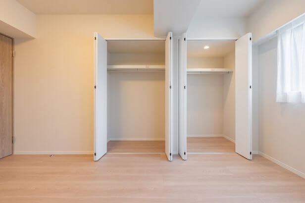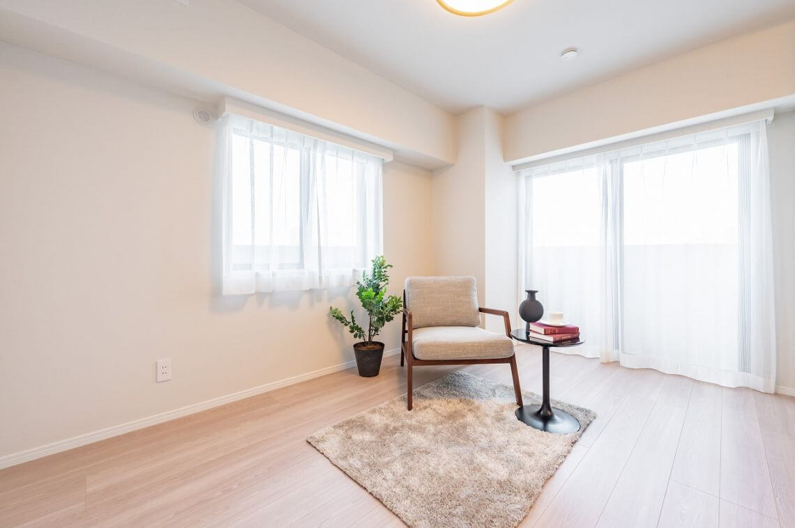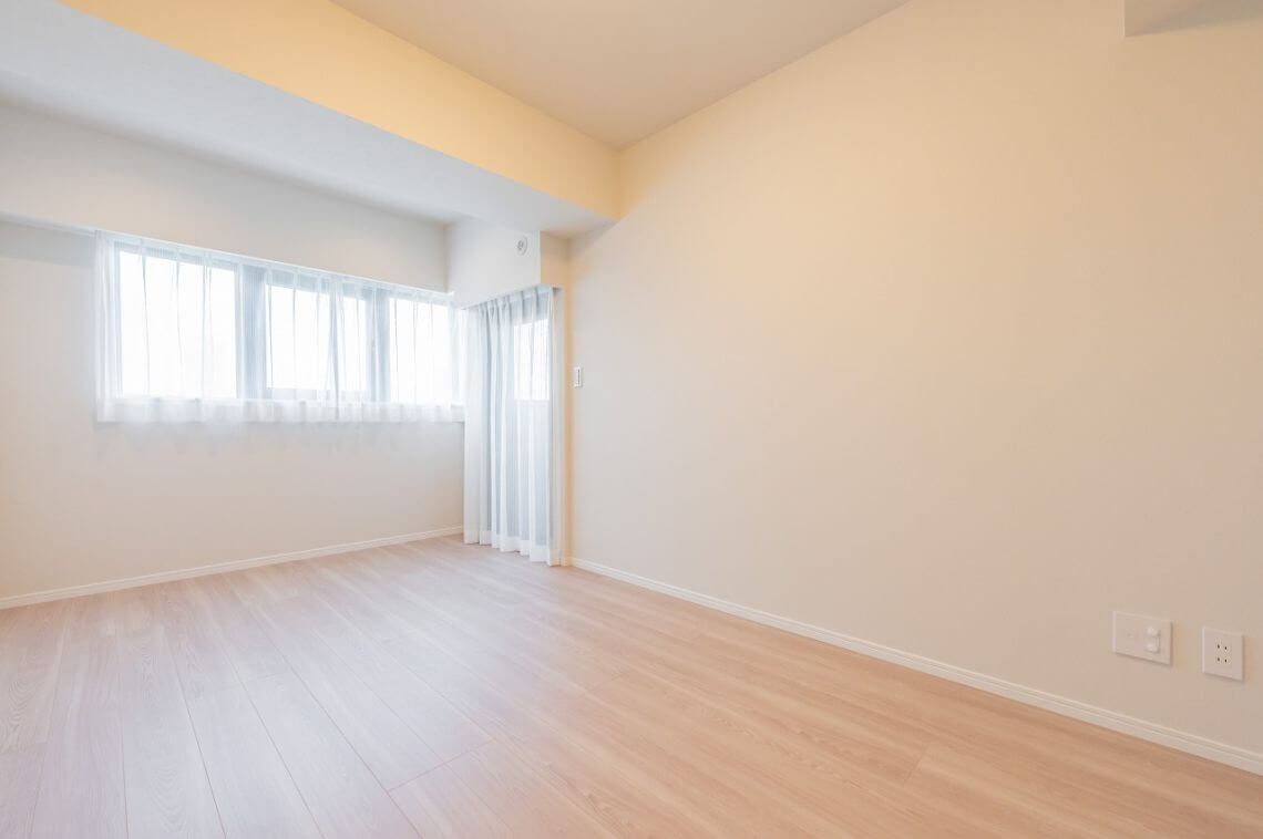 約7.1帖の洋室1。3つの洋室の中で一番広いお部屋です。朝のやさしい光が感じられる北東向きです。クローゼットも2つ付いています。