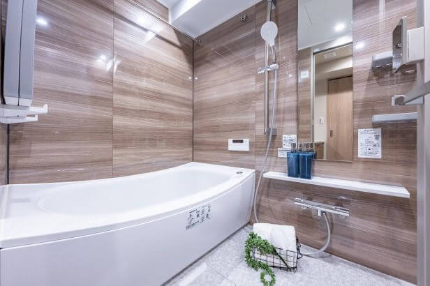 ウッド調であたたかみのある雰囲気のバスルーム。1317サイズです。追い炊き機能の他、衣類乾燥・換気・暖房・涼風の4つの機能が備わっていて、一年中快適にバスタイムが楽しめます。ランドリーパイプも付いていて雨の日や冬場の洗濯にも困りません。