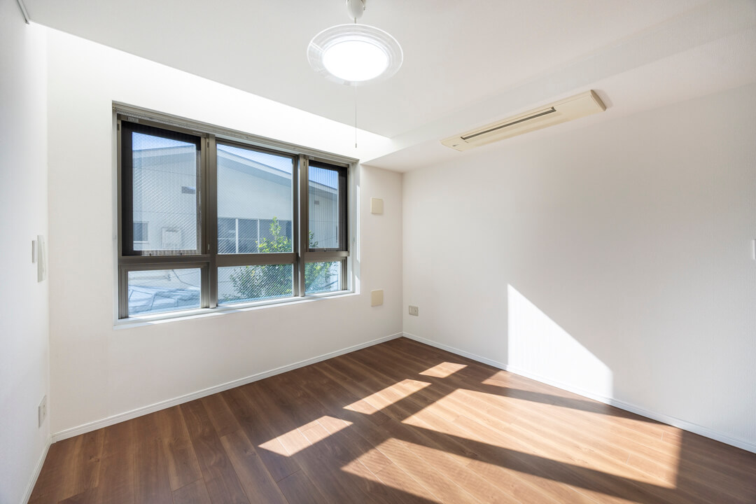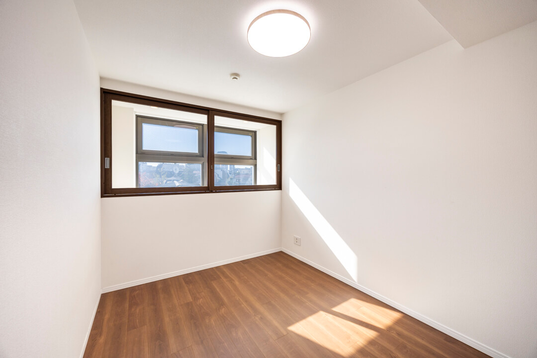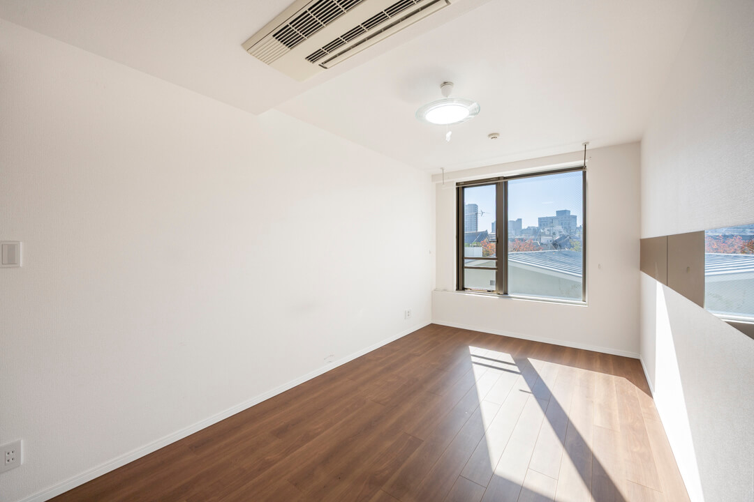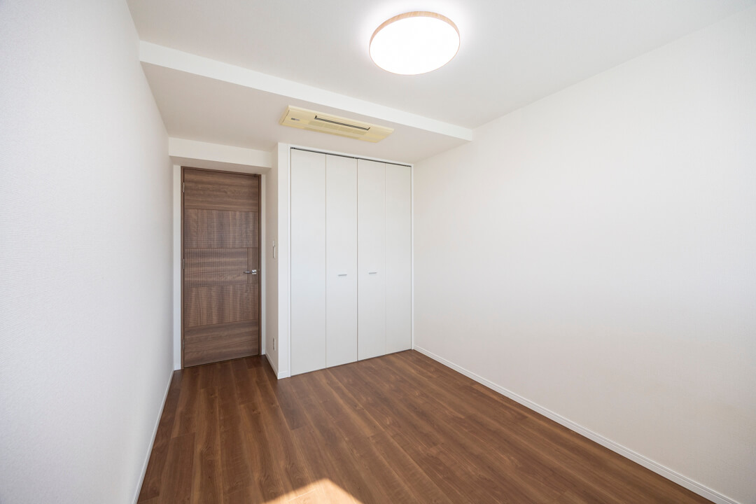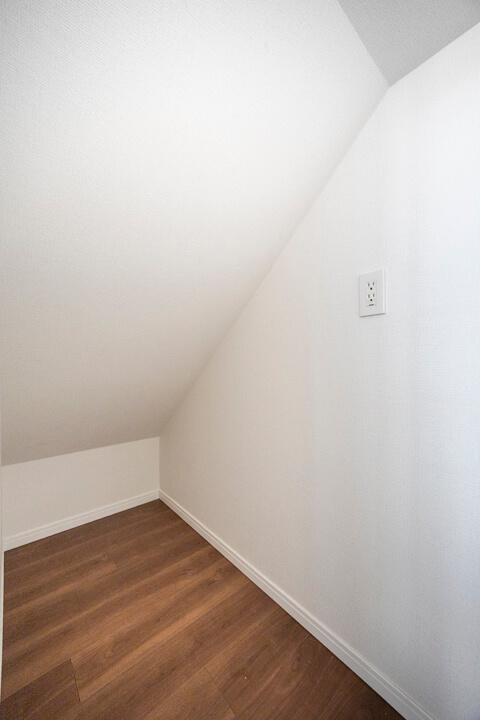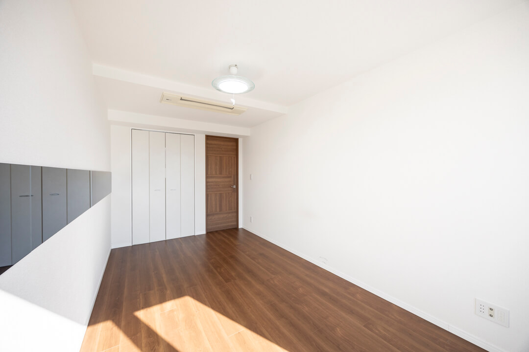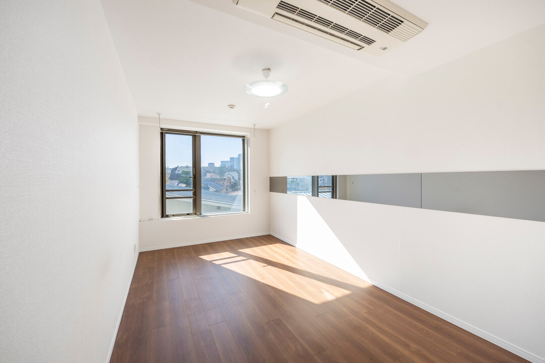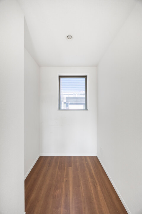 約6.5帖の洋室2。洋室は3階部にあります。こちらのお部屋も南向きで陽当たり・眺望良好。窓はリビングの吹き抜け部分に面しています。クローゼットも備わっていますよ。
