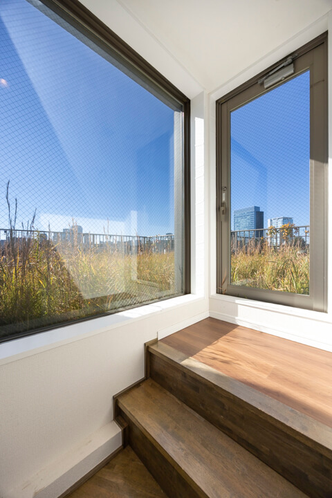 屋上には約32㎡のゆとりあるルーフバルコニー(ルーフガーデン)があります。手入れをして整えれば家庭菜園や、テーブルセットを置いてコーヒータイムや読書なども楽しめます。見晴らしも良好です。
