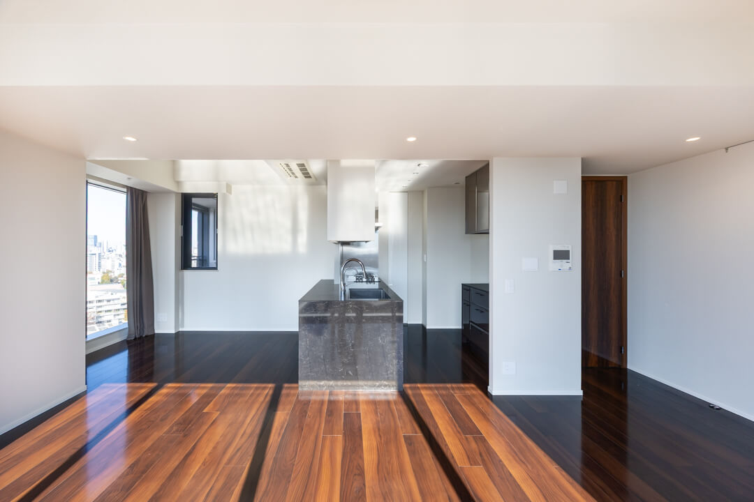 東京メトロ南北線・都営三田線「白金台」駅より徒歩5分。都心でありながら緑も多い高級住宅街、港区白金エリアにそびえ立つ「ザ・パークハウス白金二丁目タワー」。2018年竣工、地下2階付27階建、総戸数172戸の免震タワーレジデンスです。24時間セキュリティシステム・24時間有人管理体制でセキュリティ面は安心。快適な暮らしをサポートしてくれるコンシェルジュサービスや共用施設も充実しています。今回のお部屋は13階部分、専有面積88㎡のゆとりある2LDKです。南西角住戸につき日当たり良好◎。八芳園の緑を望む、開放的な眺望が魅力です。青空とのコントラストが美しく、毎日に癒しを与えてくれそうですね。リビングはもちろん、寝室にも床暖房が付いているのも嬉しいポイントです。