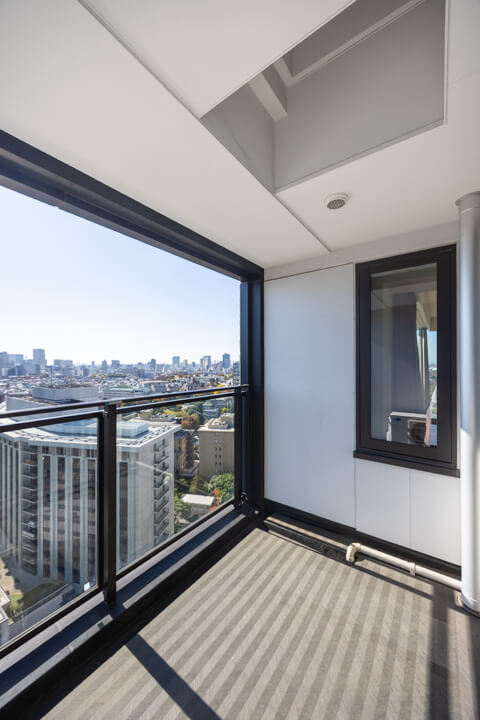 バルコニーは2ヶ所にあり、各寝室に接続しています。南&西向きで日当たり良好◎。八芳園の豊かな緑を望むことができます。遠く広がる青空とのコントラストも美しく、ほっとリフレッシュできる場所になりそうです。