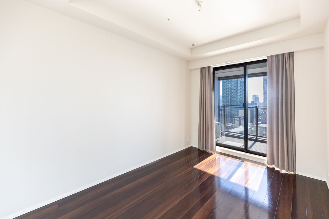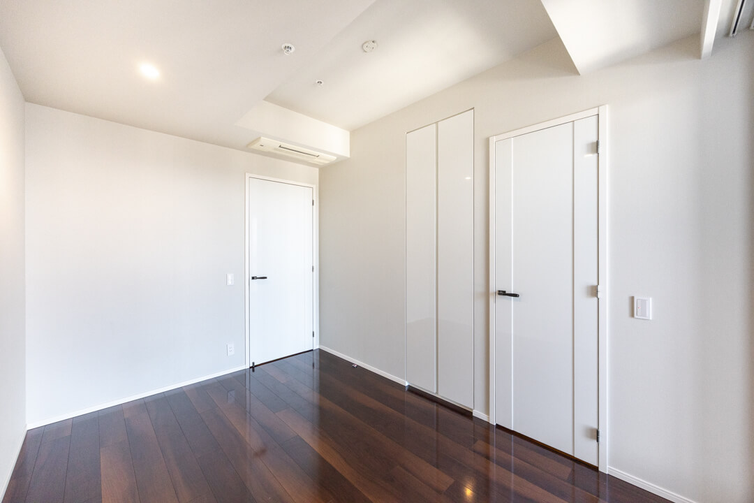 約6.5帖の寝室2。西向きのバルコニーに接続しています。明るい光が届き、奥行きもたっぷり。WIC(ウォークインクローゼット)&クローゼット完備で収納性の高さも魅力的です。すっきり収納して、居室空間を有効活用できそうですね。