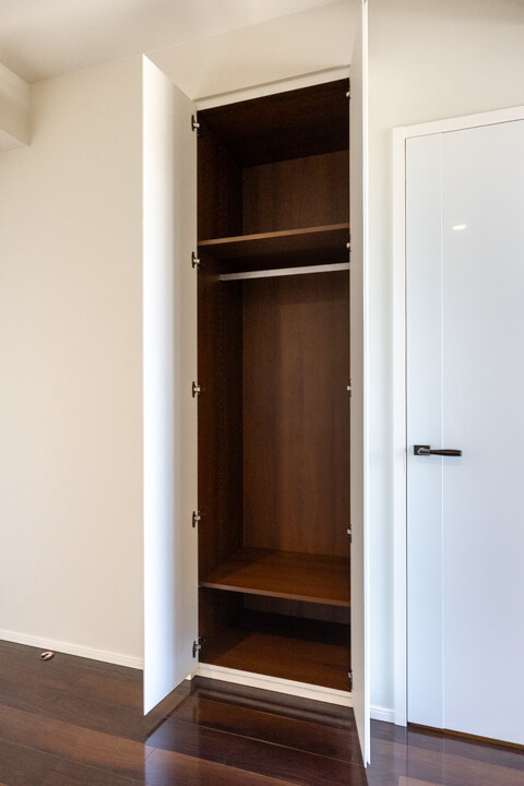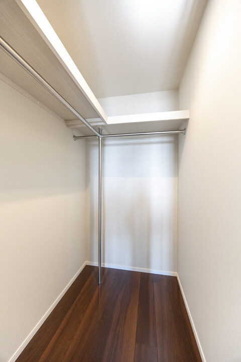 WIC(ウォークインクローゼット)完備で収納力◎。衣類はもちろん、トランクケースやゴルフバッグといった大きな荷物も収納でき、居室空間を広々と使うことができます。