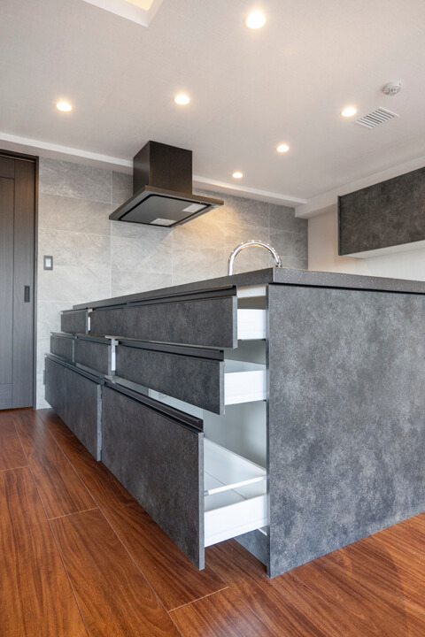 キッチンは、リビングダイニングを見渡しながら料理ができる対面式です。家族や来客とのコミュニケーションが取りやすくて◎。