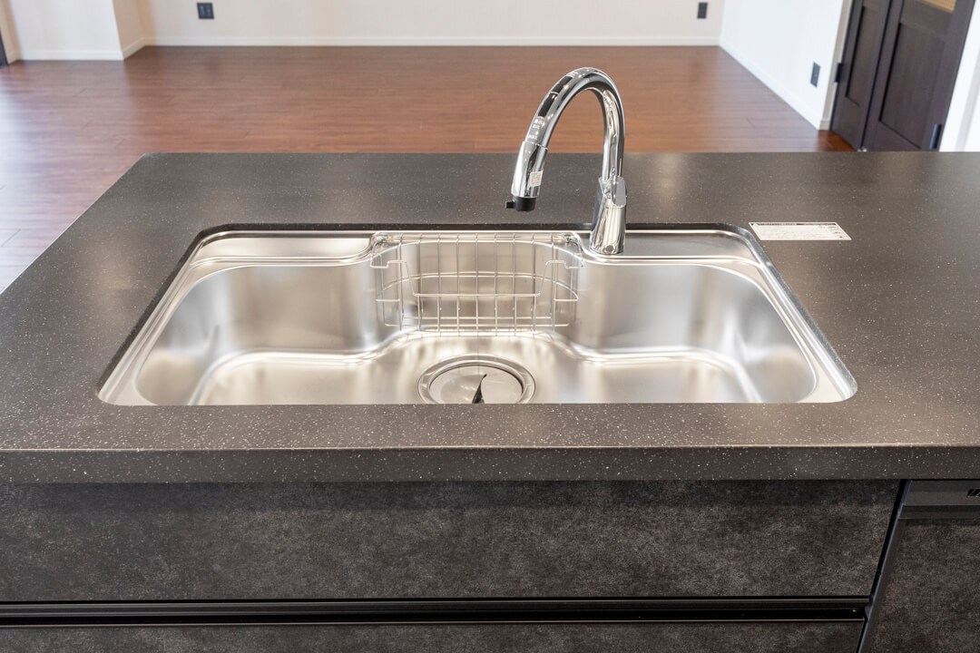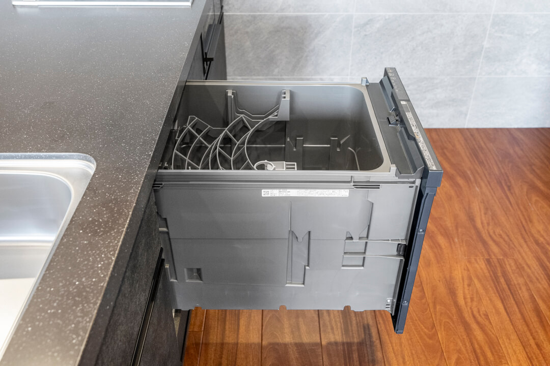 3口コンロ、グリル、食洗機付きと設備面も充実しています。シンクも広々としているので野菜などが洗いやすそうですよ。