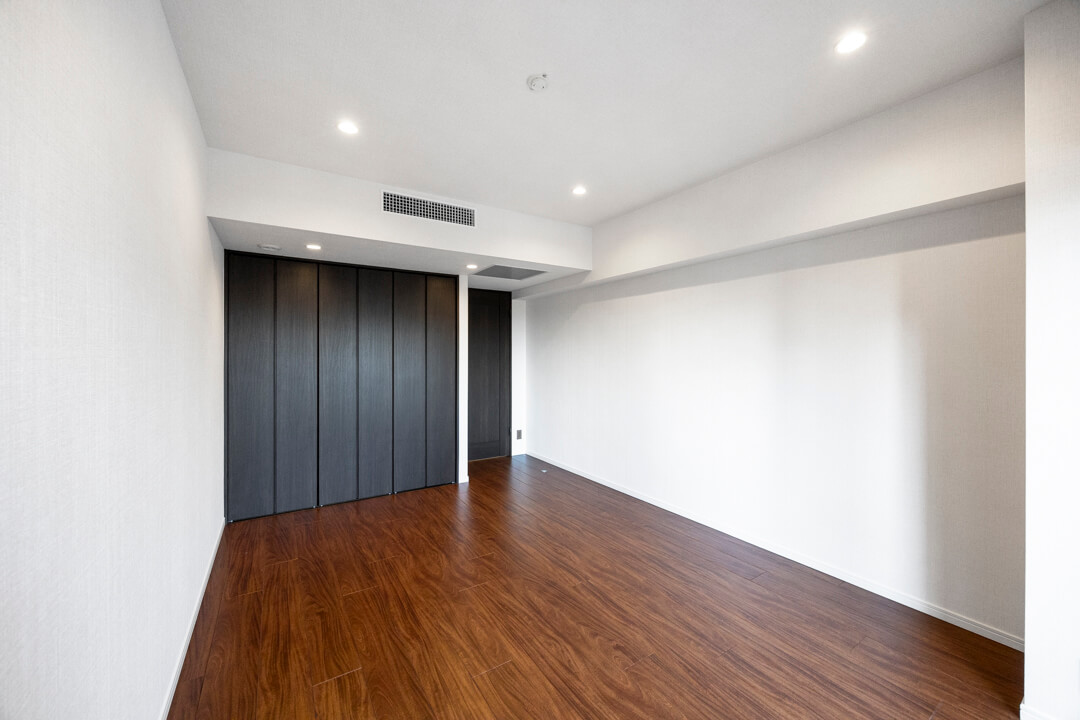 約9.4帖の寝室1はゆとりがあって主寝室に良さそうなお部屋です。大きめのベッドなども配置できそうで、南東向きのため日当たりも良好。奥行きがあるクローゼット付きのため、洋服などもすっきりと収納することができます。