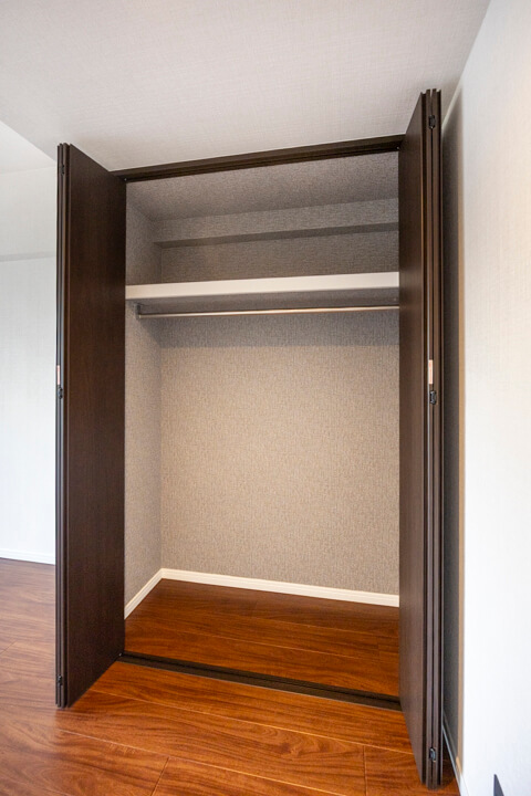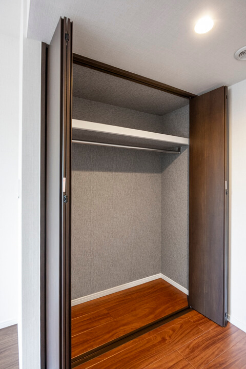 約8.5帖の寝室3は、独立性があって子ども部屋に良さそうな空間。ベッドだけでなく、机も配置できそうですよ。クローゼットは開口部が広くて物の出し入れがしやすくて◎。