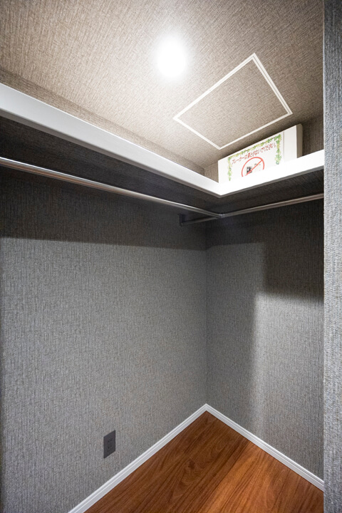 高級感が漂う玄関には、約2.8帖のシューズインクローゼットが造られており、たくさんの靴やアウトドアグッズなどを収納できます。また、廊下には約2.2帖のウォークインクローゼットがあります。シーズンオフの荷物や大きめの荷物を収納して置けるので便利ですね。