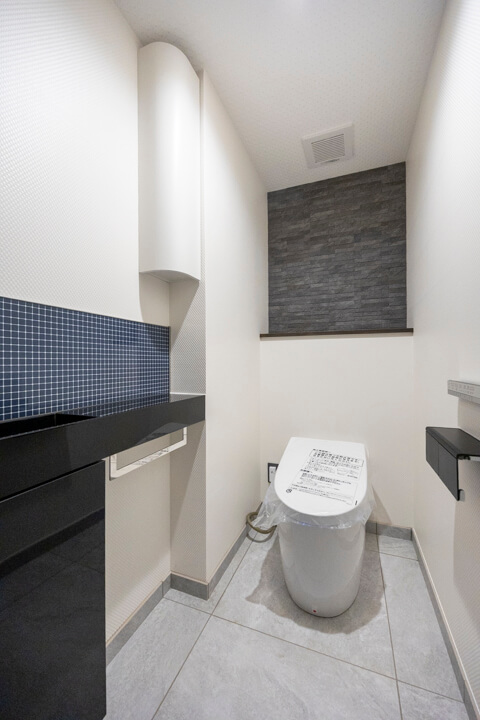 トイレは2ヶ所に造られています。プライベート用と来客用とで使い分けることができるので便利です。また、どちらにも手洗い器が設置されており、その場でサッと身だしなみを整えることができます。