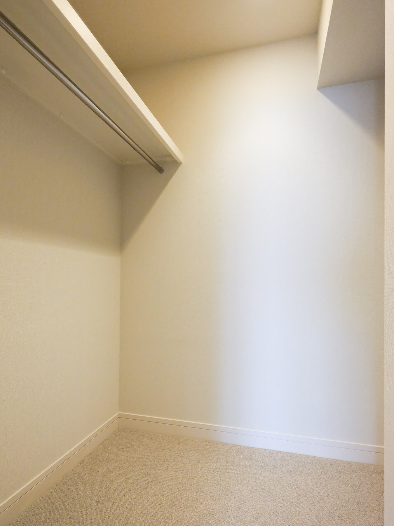 WIC(ウォークインクローゼット)&収納棚完備で収納豊富◎。衣類はもちろん、トランクケースやゴルフバッグといった大きな荷物も収納でき、居室空間を有効活用できます。