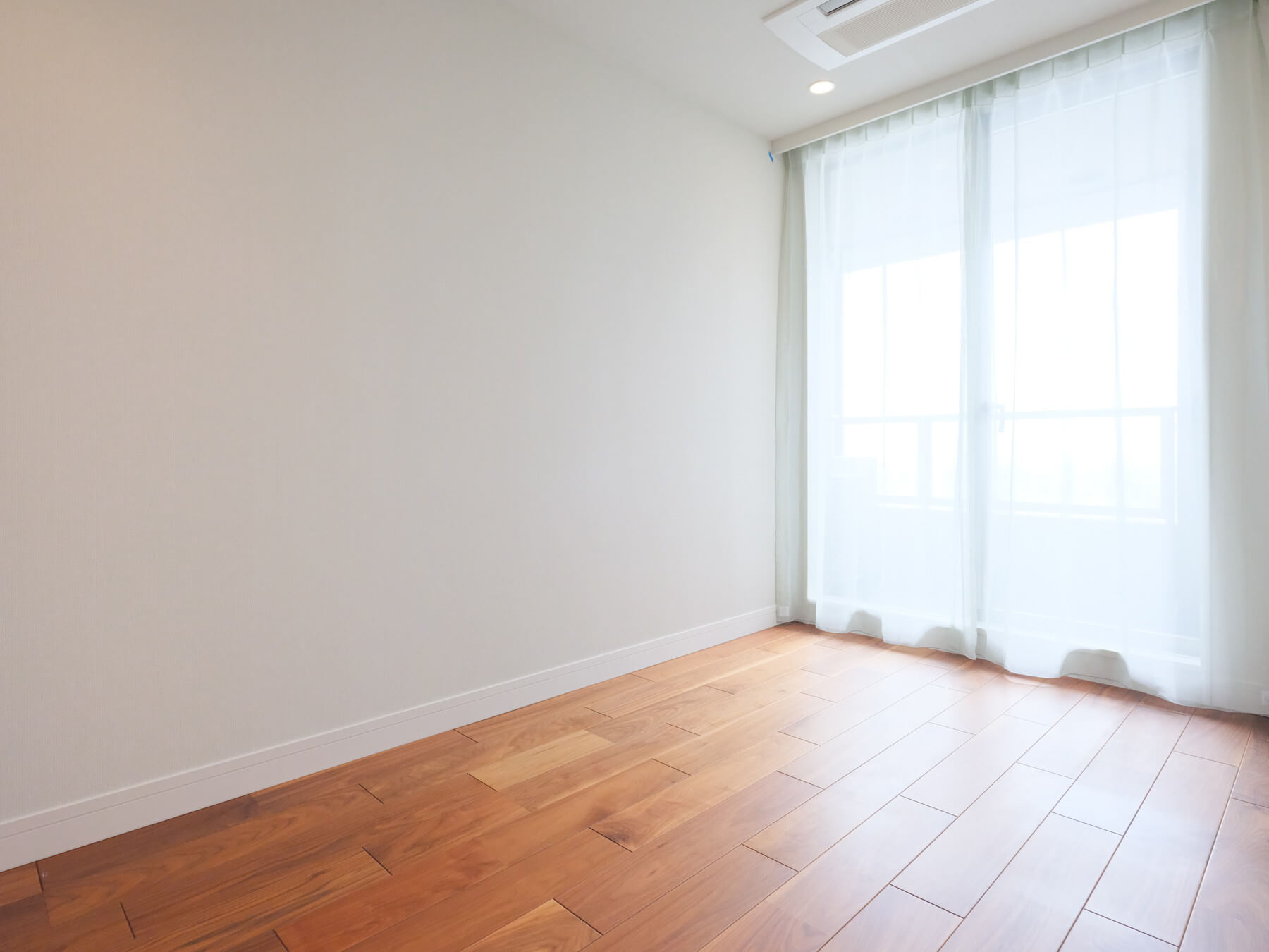 約5.0帖の洋室2。子ども部屋やワークスペースなど、家族構成やライフスタイルに合わせて活用できる空間です。作業や勉強の間に、バルコニーに出て気分転換するのも良いですね。クローゼット完備で収納スペースもしっかり確保されています。