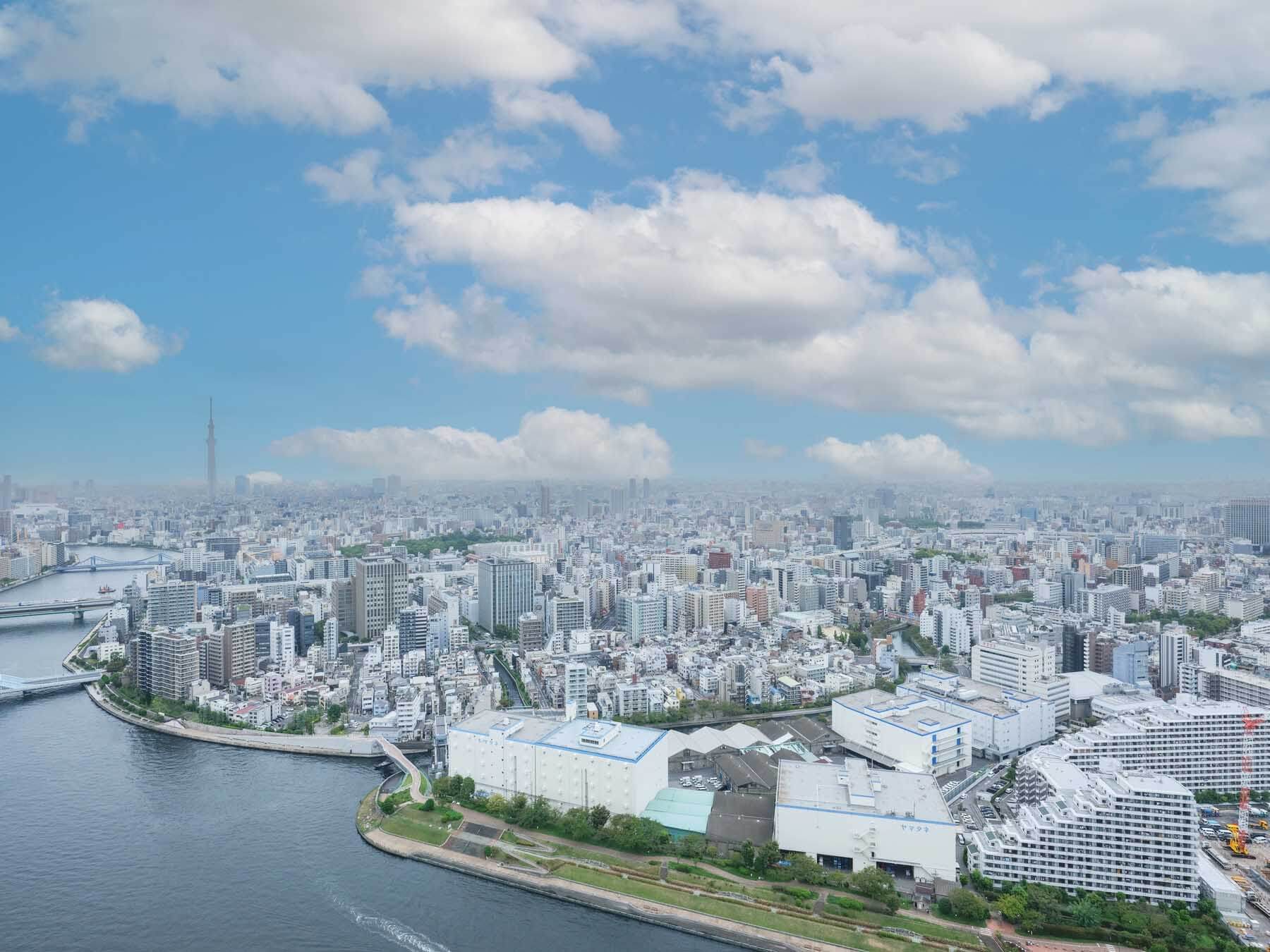 バルコニーは2つあり、各洋室に接続しています。47階からの眺望は開放感たっぷり。四季の移ろいを感じる空と隅田川、都会ならではのビル群のコントラストを楽しむことができます。深呼吸し、ほっと一息つける場所になりそうですね。