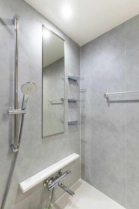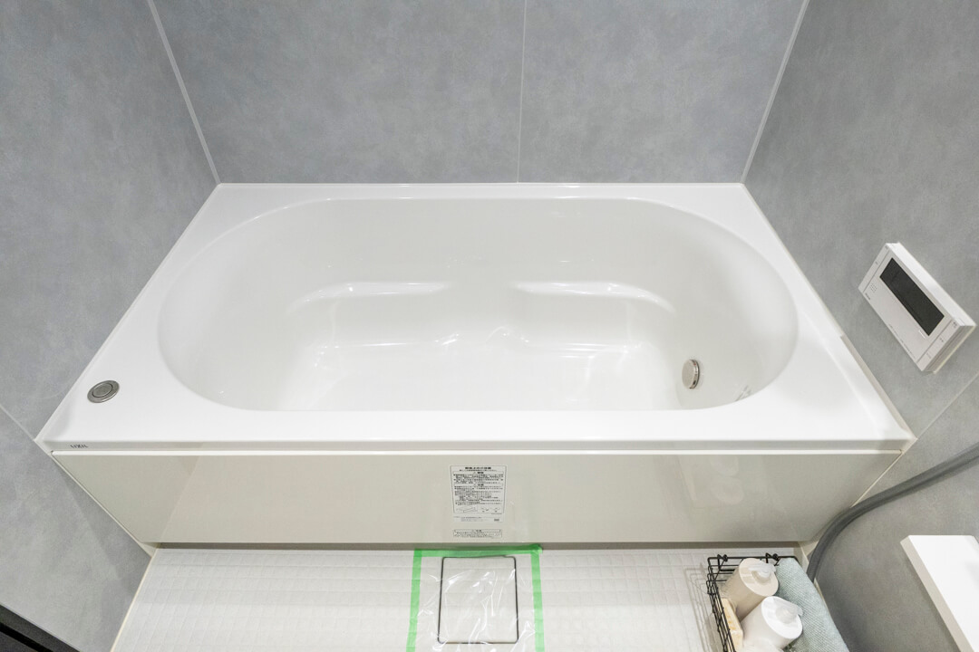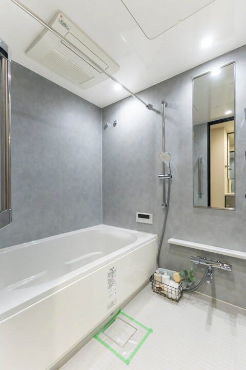1418サイズのバスルーム。換気・暖房・乾燥・涼風機能付きで1年中快適なバスタイムを過ごすことができます。お風呂にゆっくり浸かるのが好きという方に嬉しい追い焚き機能も搭載されています。
