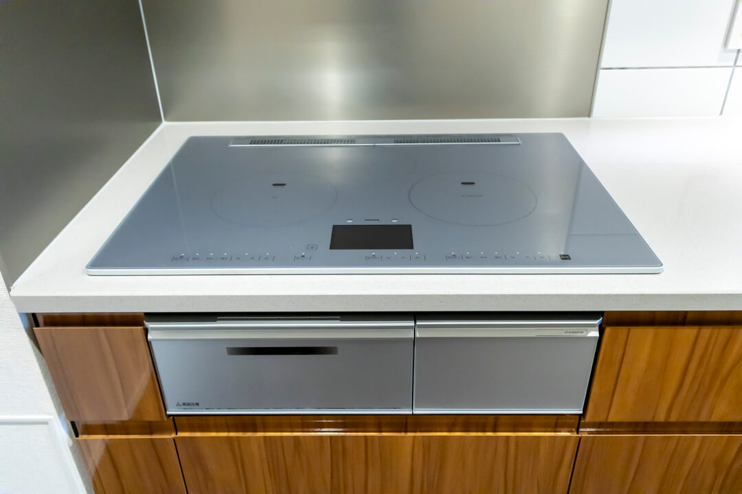 スイッチで火力を調節でき、ガスコンロよりも調整が簡単なIHクッキングヒーターを採用。凹凸がなくフラットなので掃除がしやすく、お手入れのしやすさもポイントです。