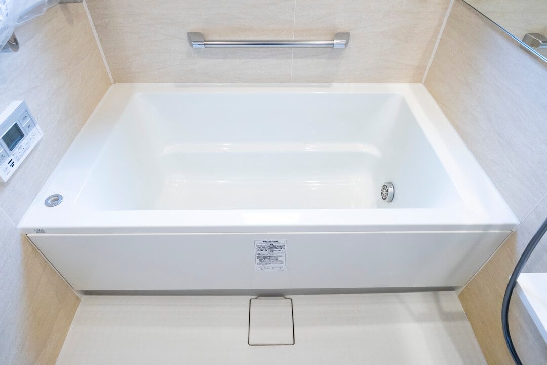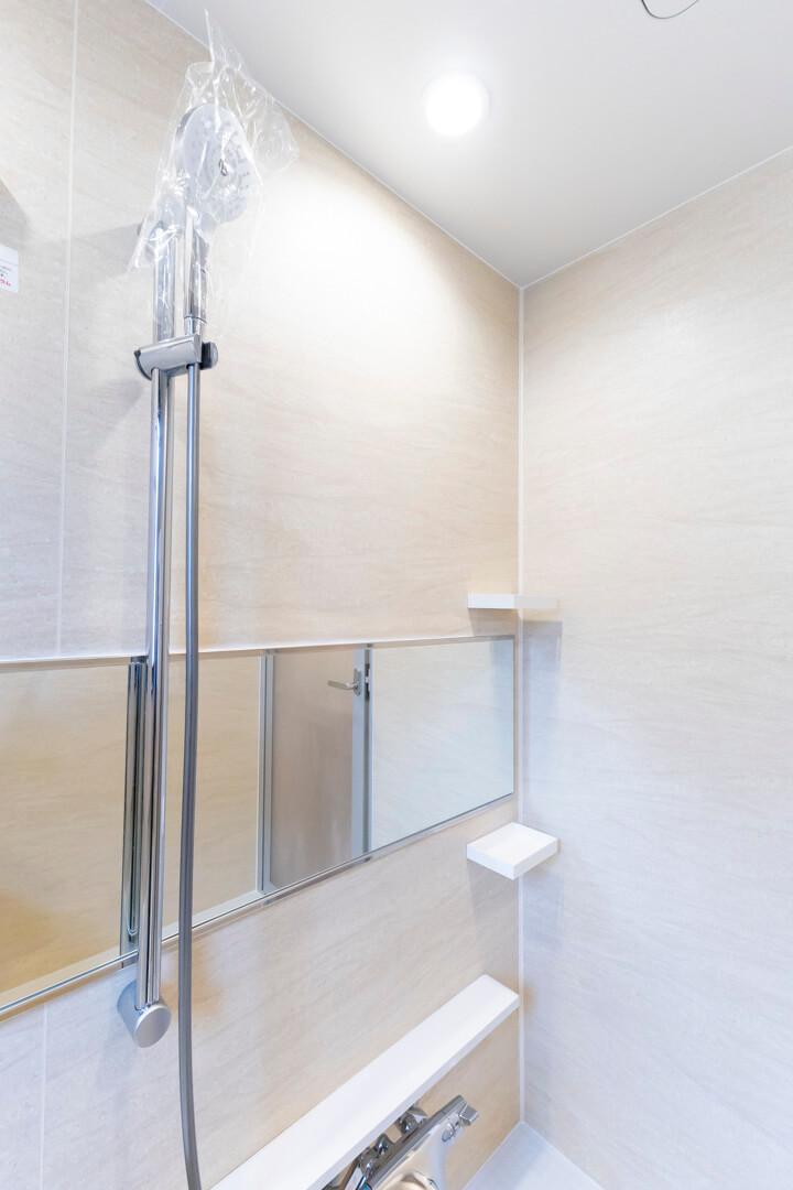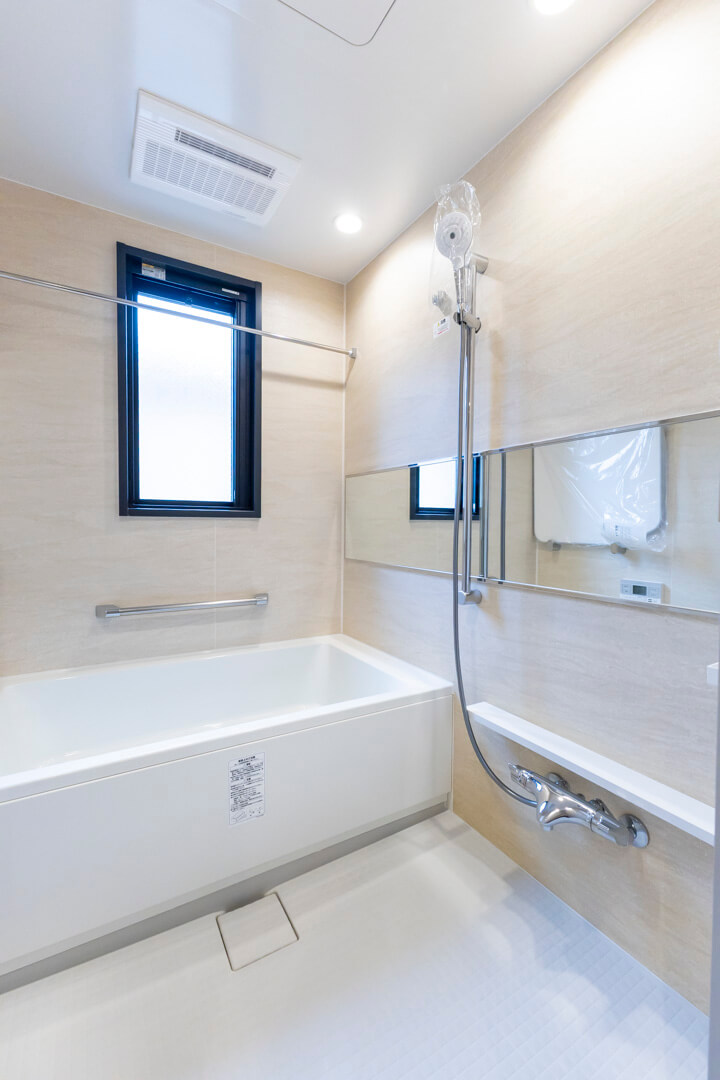 窓付きで明るいバスルーム。自然換気できるのも嬉しいポイントです。浴室換気乾燥機・追い焚き機能搭載で1年中快適なバスタイムに。ゆっくり半身浴も楽しむことができます。