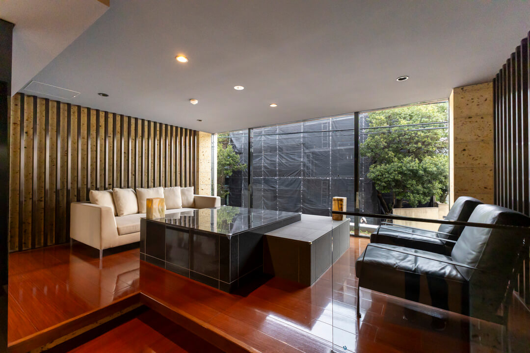 窓際のコーナースペースには異なるフロアを採用し、インナーテラスのような空間に仕上げています。観葉植物を並べたり、チェアを置いて読書を楽しんだり。部屋の中にいながら開放的に過ごせる、リラックススペースになりそうです。
