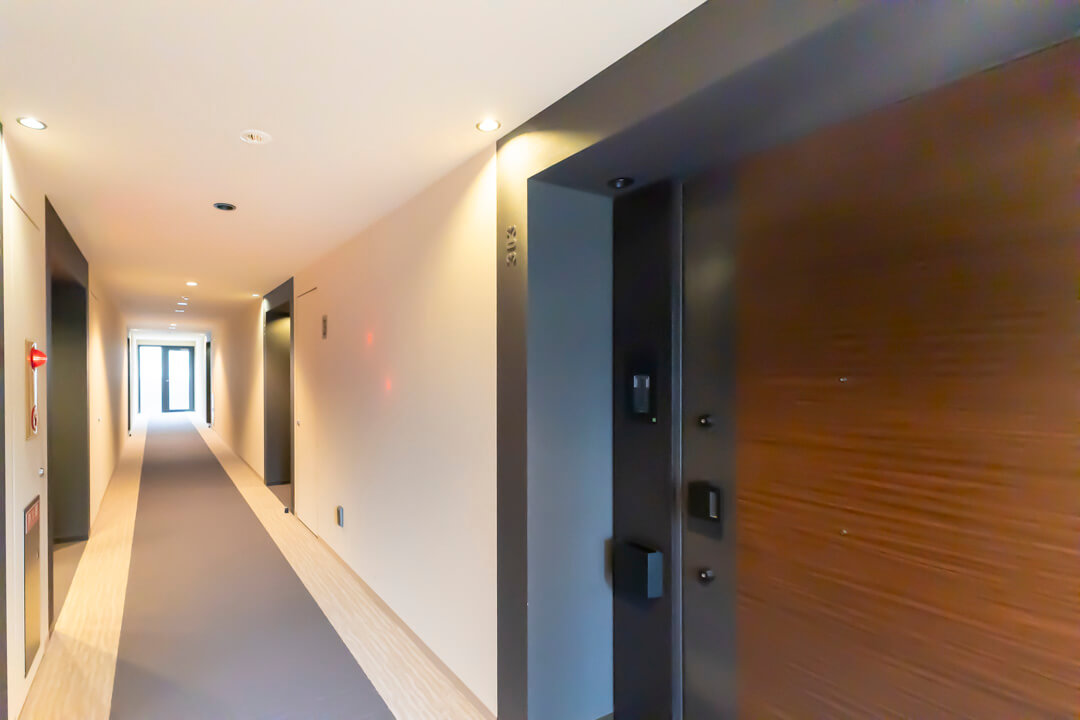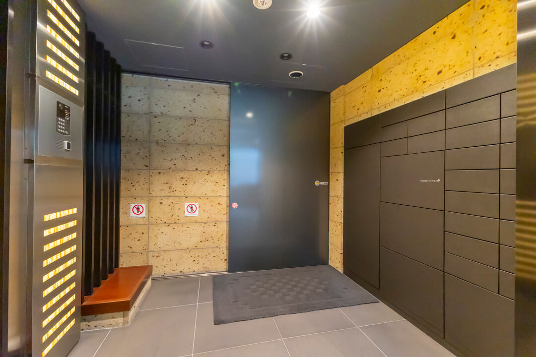 2015年(平成27年)3月竣工、地下1階付3階建の低層レジデンス。鉄筋コンクリート造、総戸数は16戸です。アースカラーを基調としたタイル貼りの外観が、落ち着いた街並みに調和しています。エントランスは階段を上った先にあり、安心のダブルオートロック体制。ロビーにはソファがあり、待ち合わせやちょっとした来客対応に便利です。不在時に重宝する宅配ボックスも完備されていますよ。敷地内には駐車場と駐輪場があり、お出かけの幅が広がりそう。空き状況は変動するのでお問い合わせください。細則はありますが、ペットの飼育も可能です。