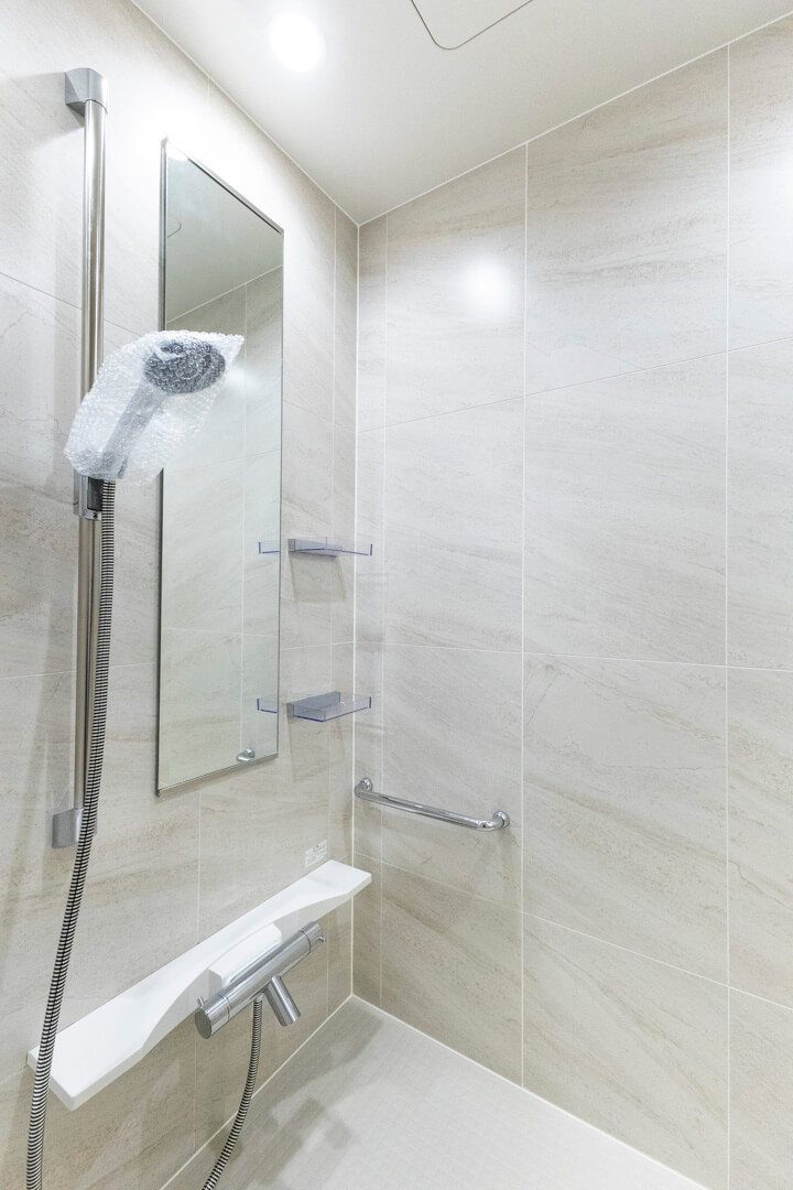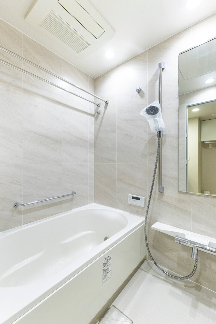 明るく清潔感のあるバスルーム。換気・暖房・乾燥・涼風機能付きで1年中快適なバスタイムを過ごすことができます。お風呂にゆっくり浸かるのが好きという方に嬉しい追い焚き機能も搭載されていますよ。