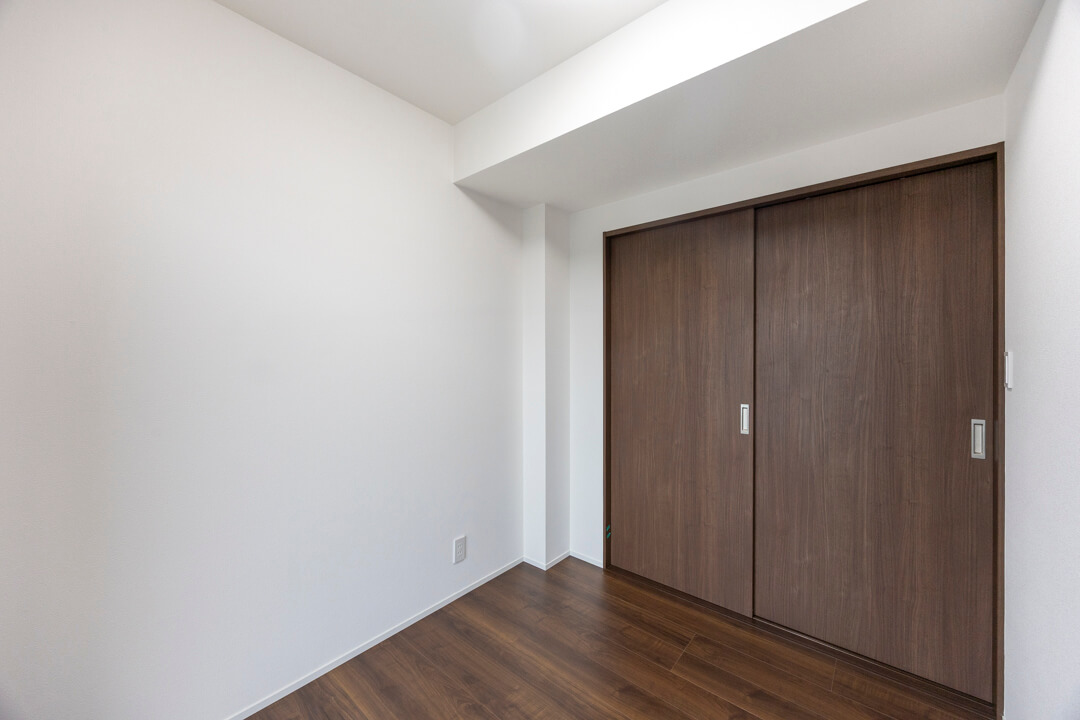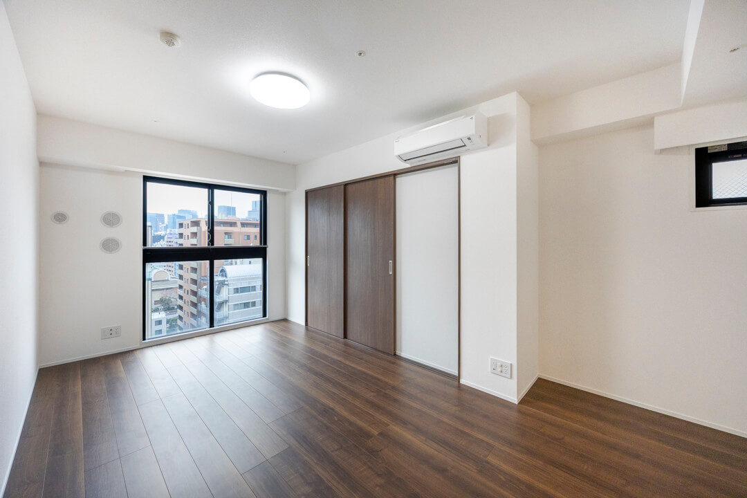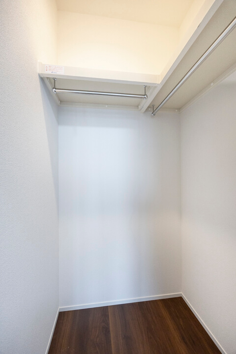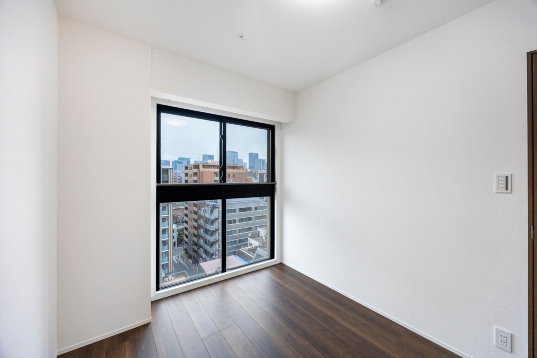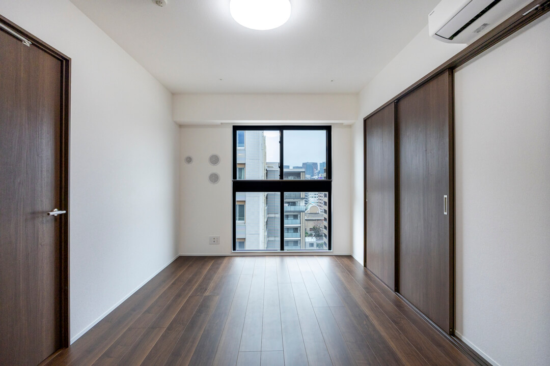 約5.0帖の洋室。11階部につき室内からも眺望良好。WIC(ウォークインクローゼット)も備わっています。また、小物類の収納に便利なコンパクトな可動棚も付いています。